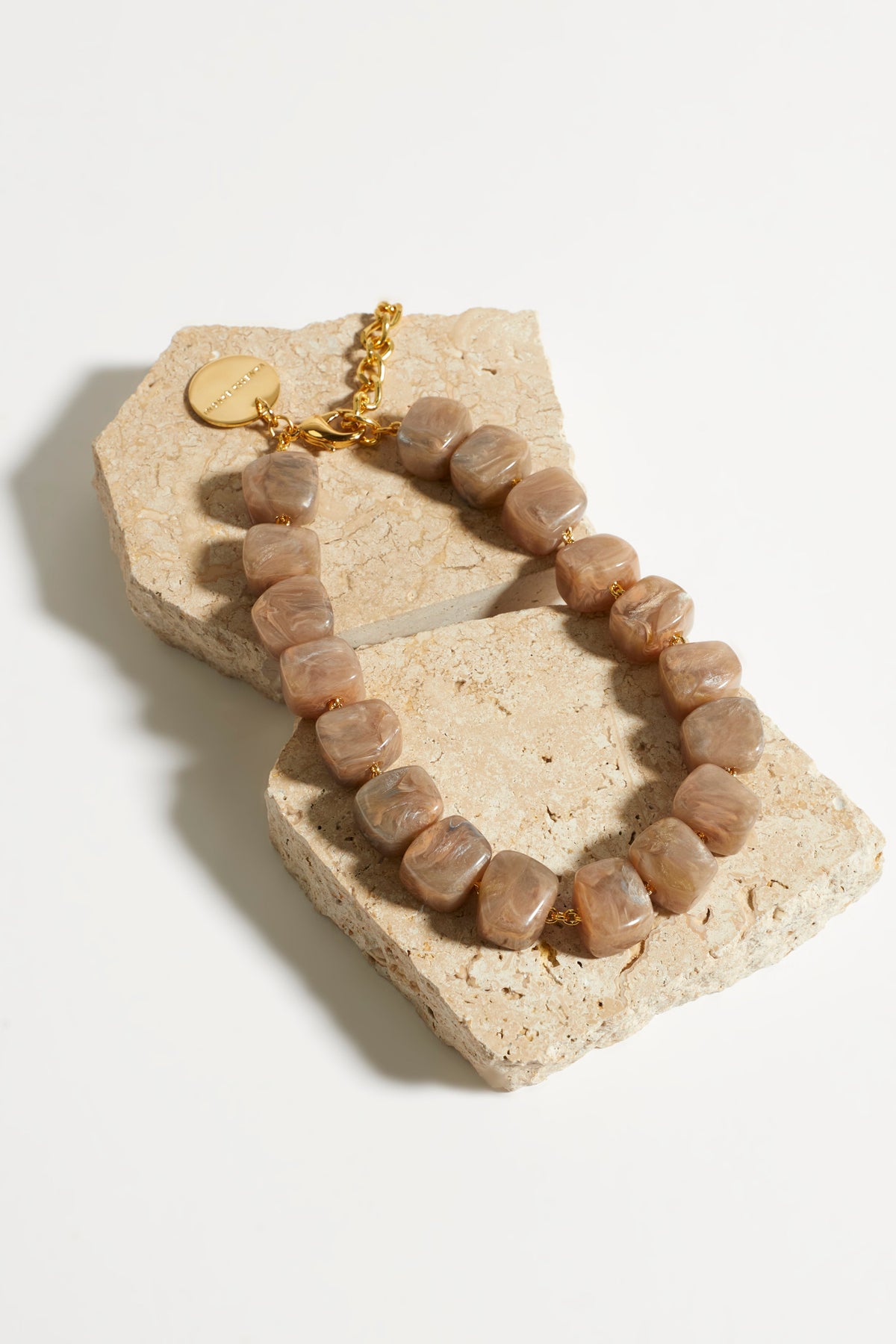 The Small Organic Shaped Necklace in Biancone Marble enchants with delicately angular shaped stones that nestle gently around the neck. As the smaller counterpart to the Big Organic Shaped Necklace, it lends a subtle elegance to any occasion. A timeless piece of jewellery that envelops you with a touch of sophistication.