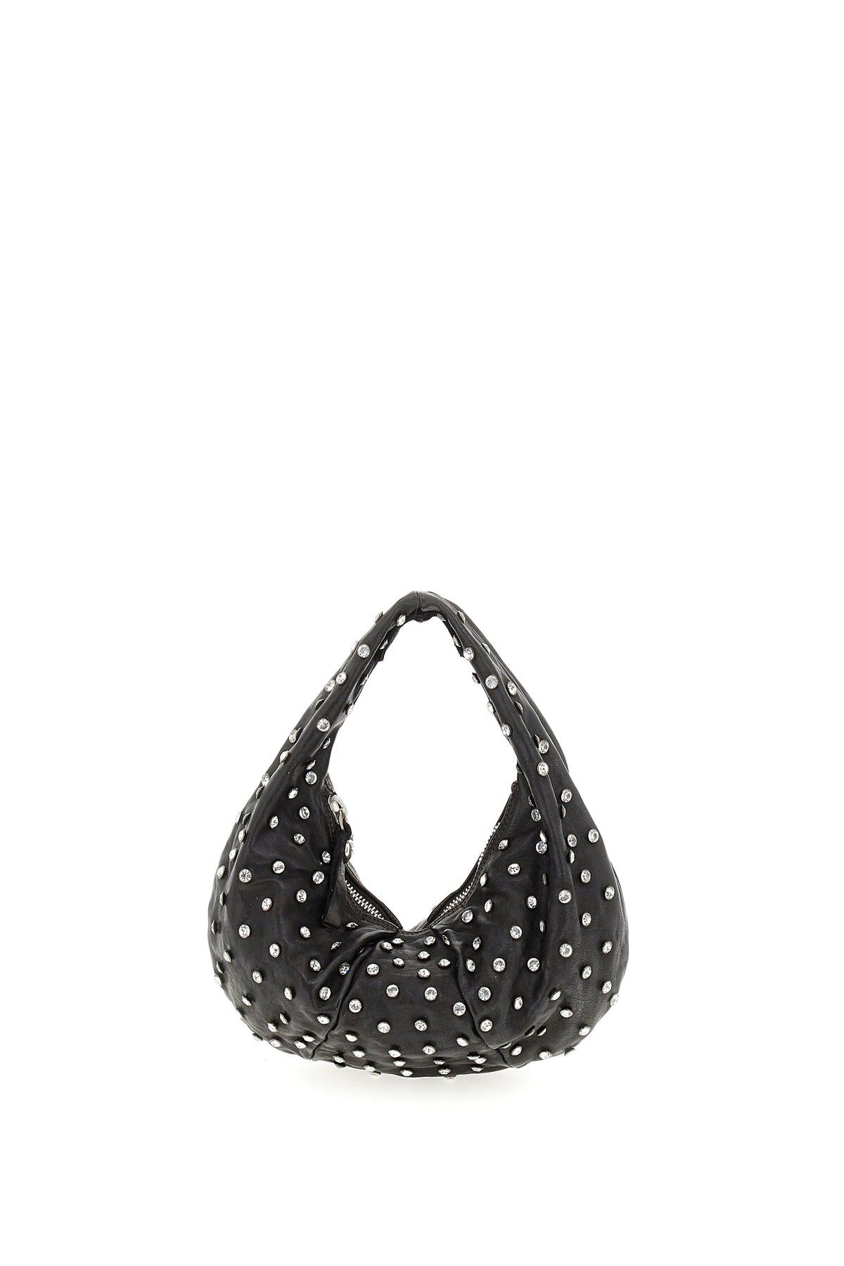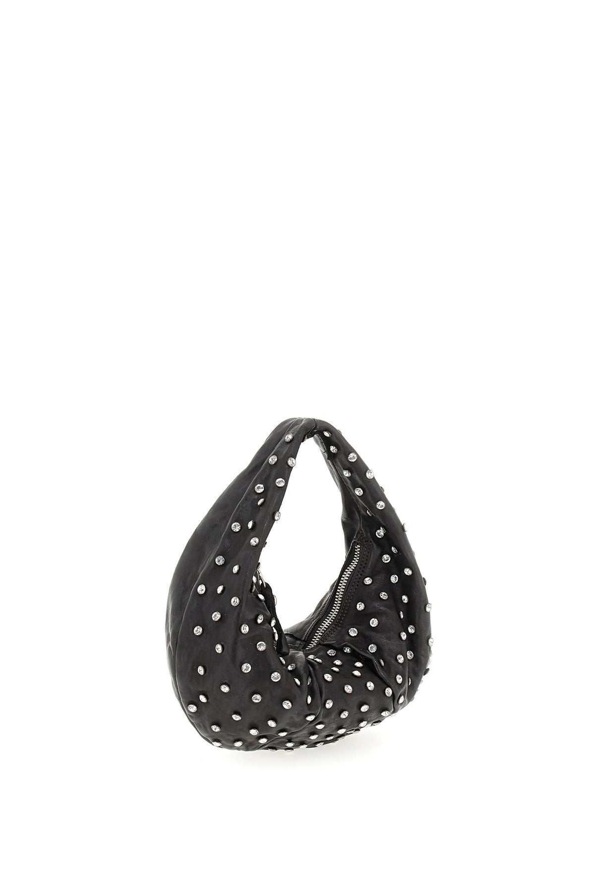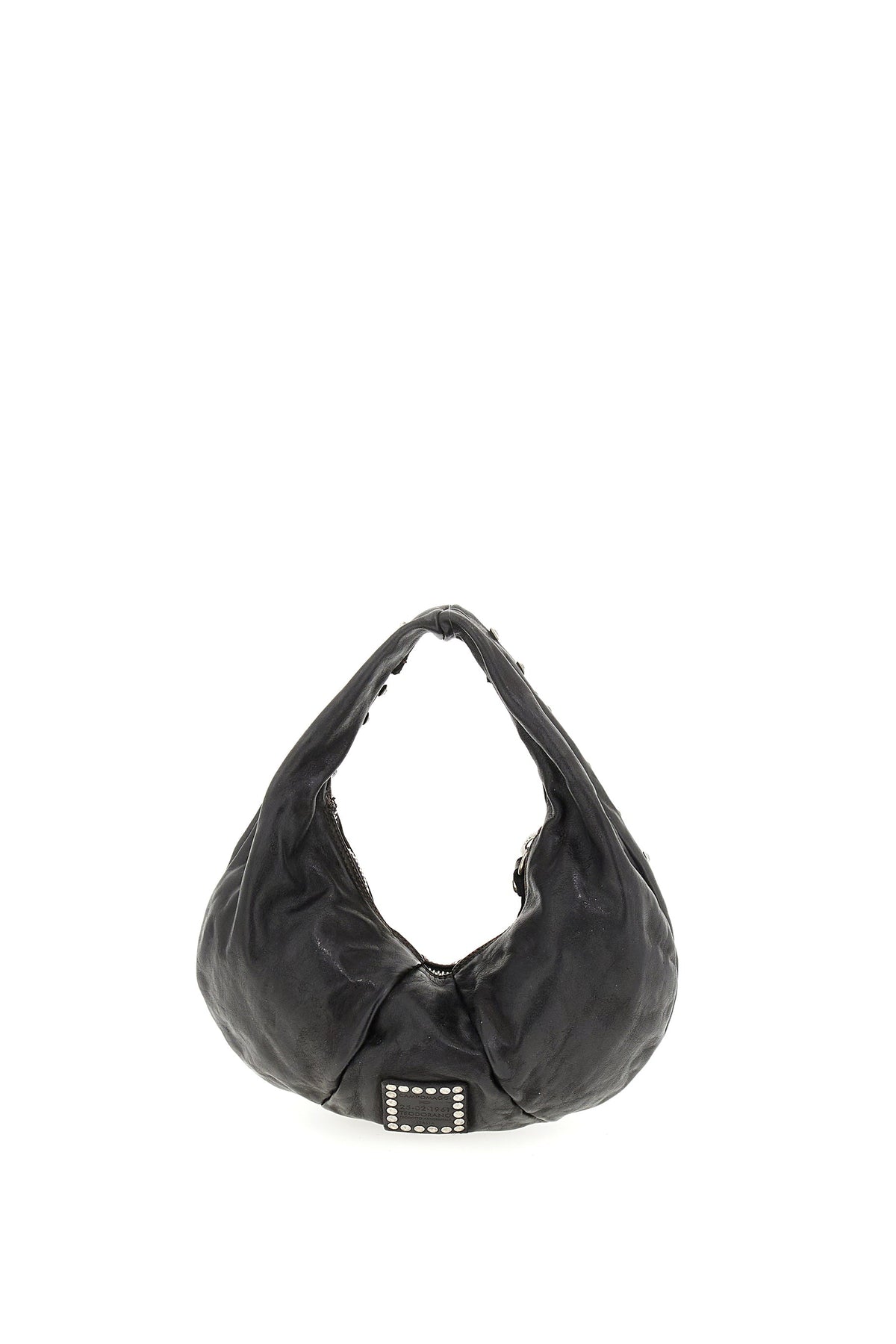 Elevate your style with the Campomaggi Ponka Bag in black. Crafted from sturdy cowhide leather, this single-shoulder croissant shaped bag exudes sophistication. The transparent strass detail adds a touch of luxury and elegance to your look.