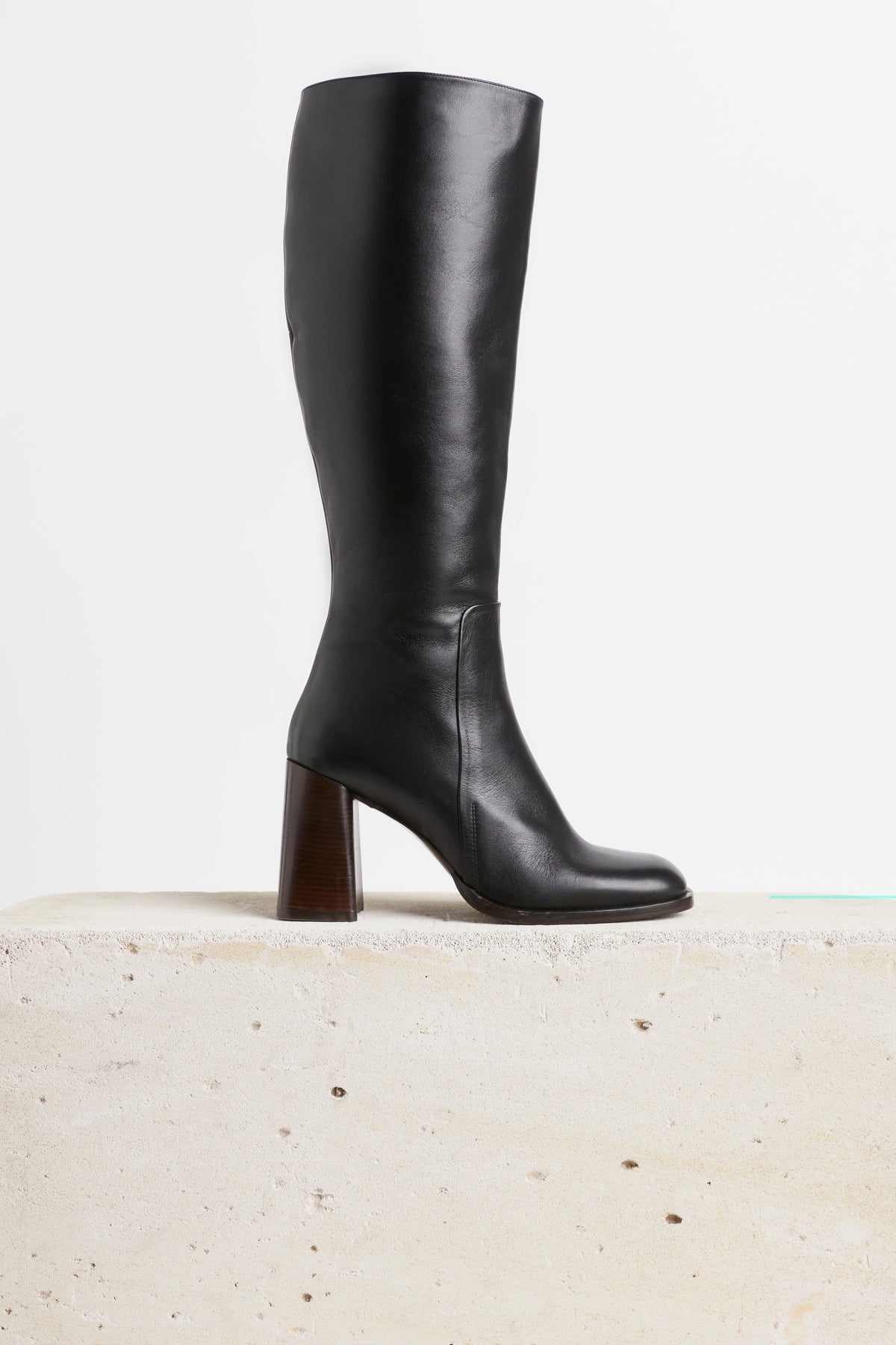 Elevate your footwear collection with our High Leather Veneer Knee High Boot. Crafted in Spain, these boots are made from premium leather and feature a striking leather veneer heel that adds a sophisticated touch to the design. With a 10cm heel, they provide the perfect lift while maintaining comfort throughout the day. The almond toe and sleek knee-high silhouette create a flattering, elegant look.