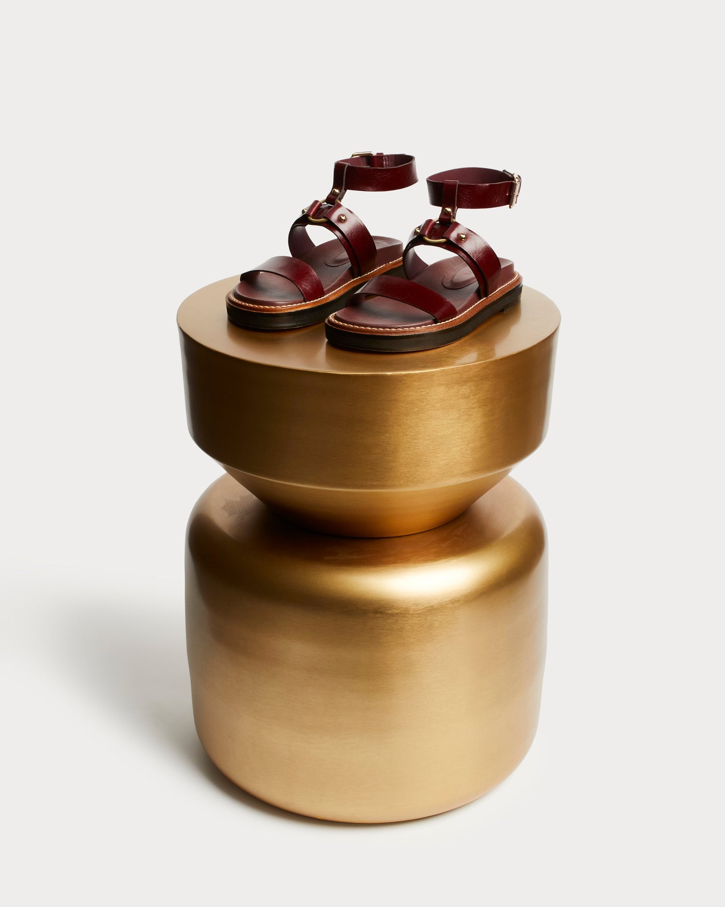 Elevate your everyday style with the Solani sandal, designed with a contoured footbed for enhanced comfort and support. Featuring two sleek leather straps and an adjustable ankle strap, this sandal is finished with elegant gold-tone hardware. The leather upper and leather-lined footbed offer a refined look and feel, while the rubber sole provides lasting durability. Made in Brazil.