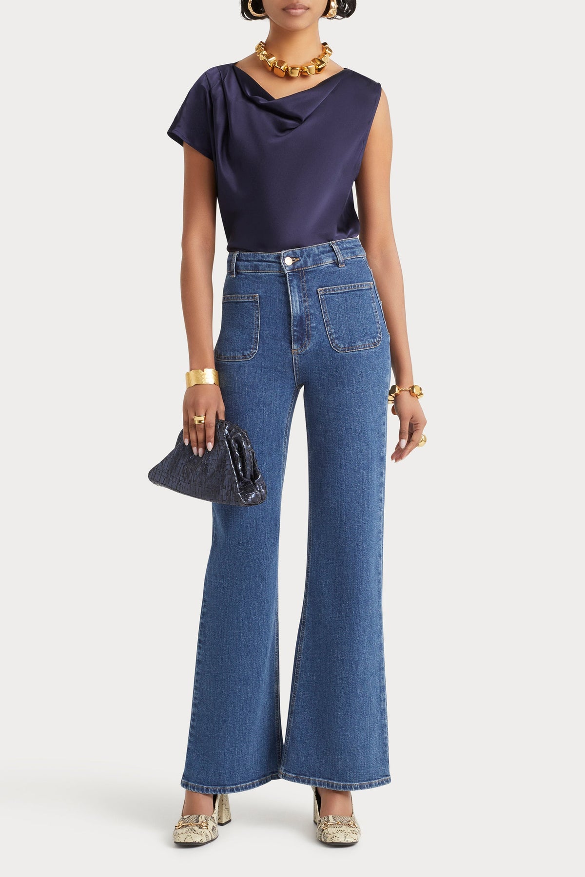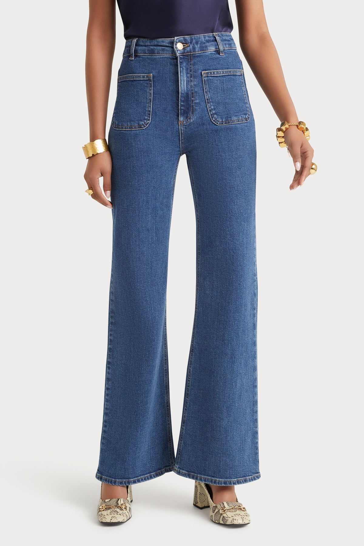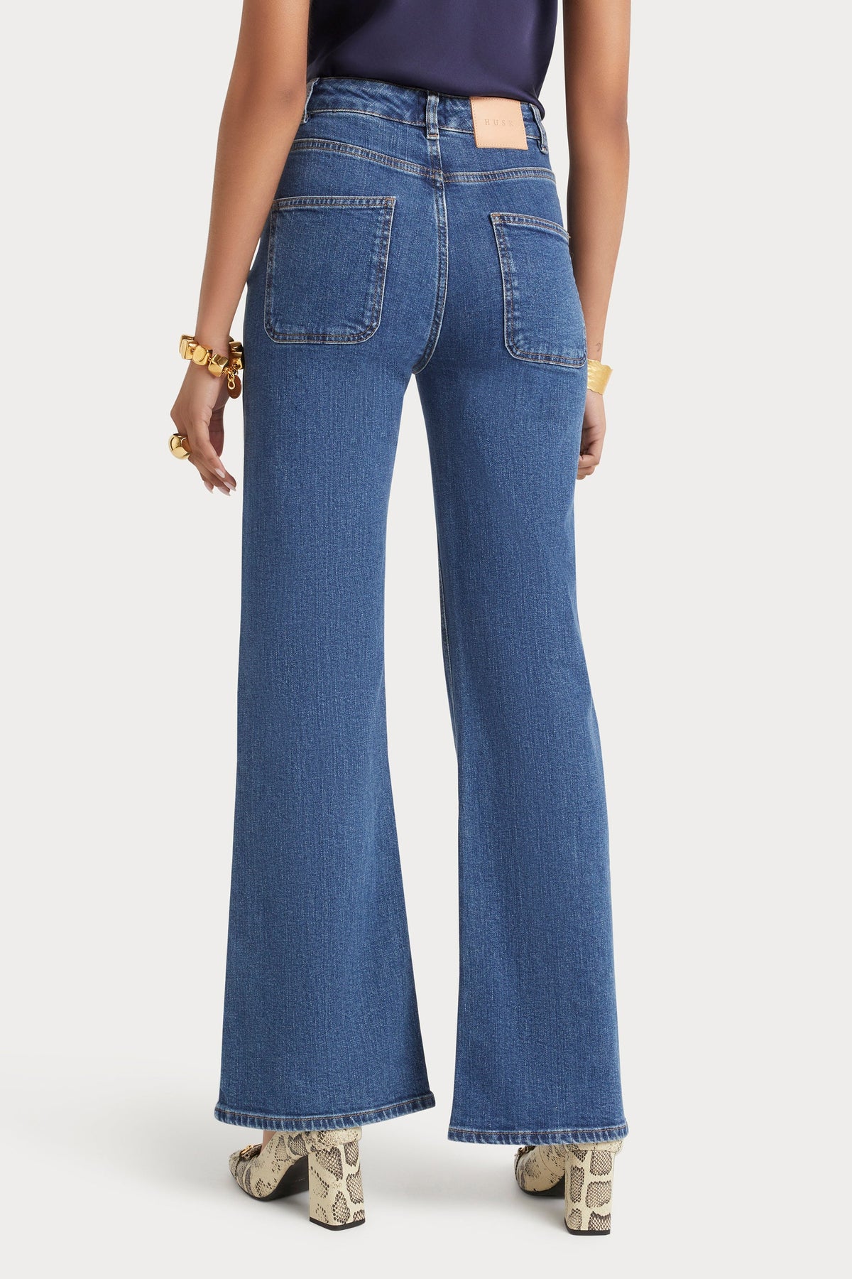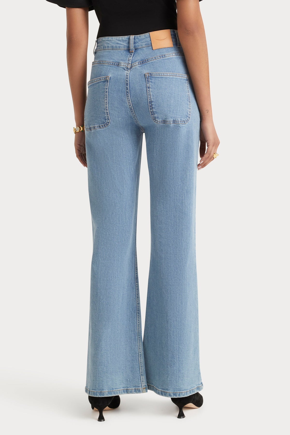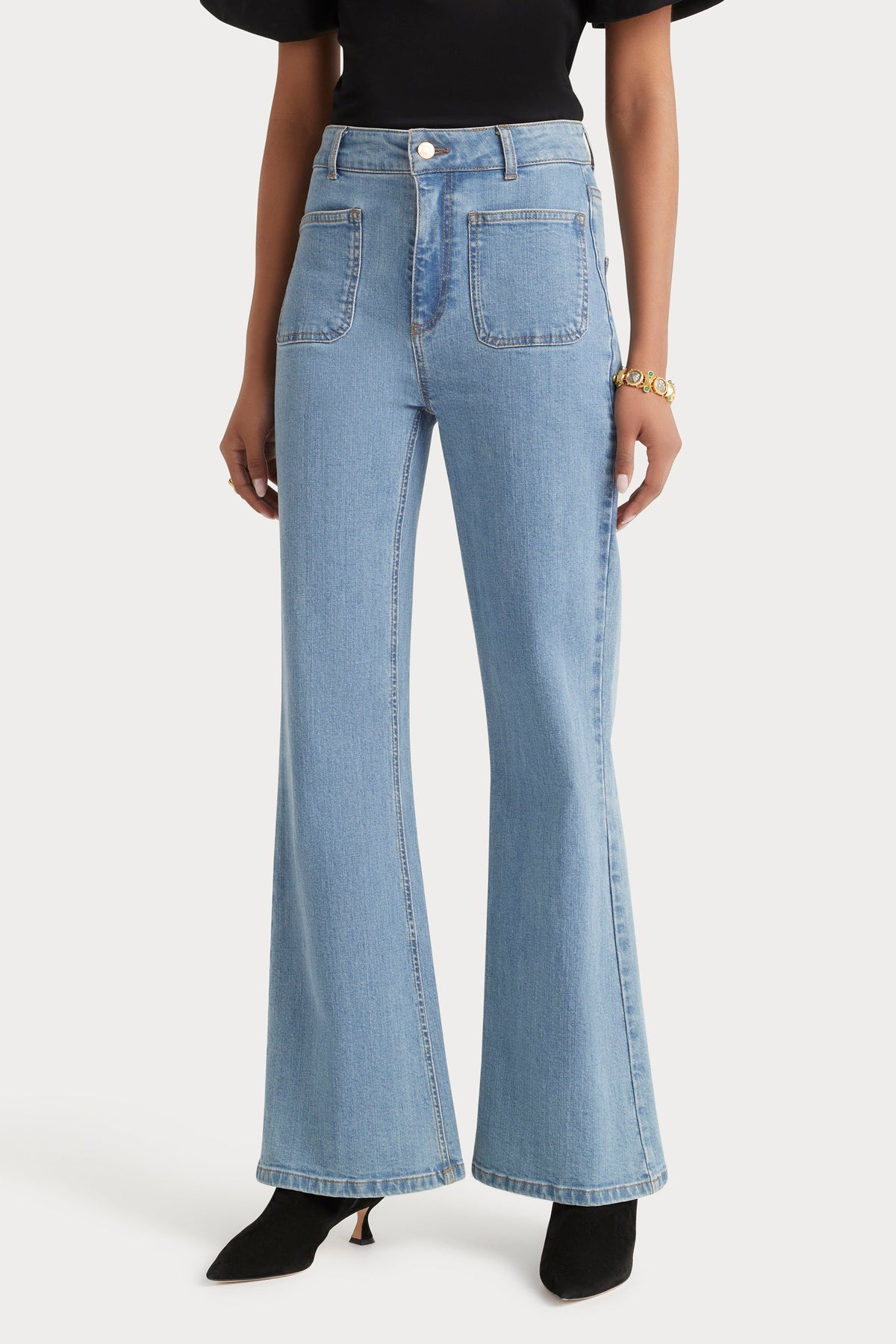 A modern denim jean with a flared leg silhouette, designed for effortless everyday styling.