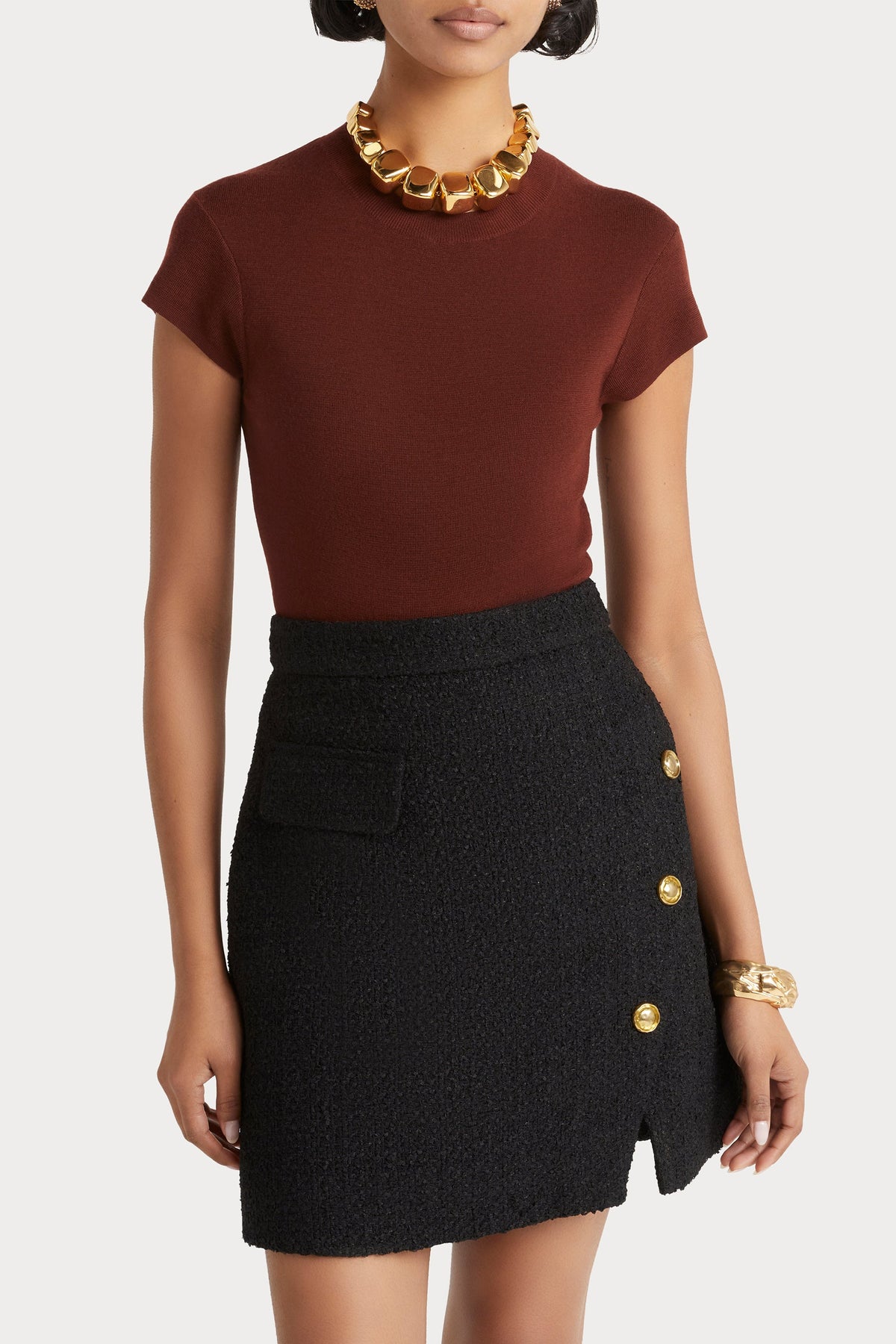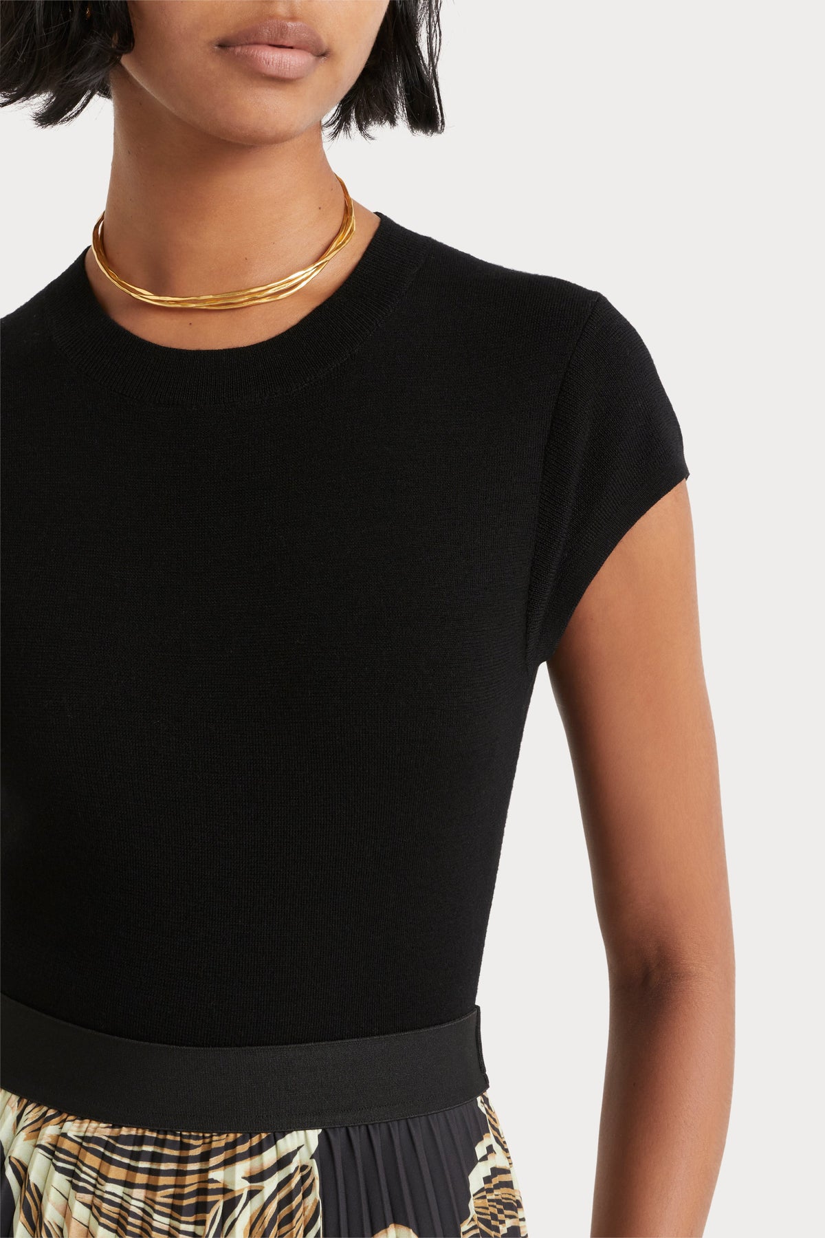 Experience timeless elegance and exceptional comfort with this finely crafted knitwear piece made from 100% extra fine Merino wool. Designed with a slim fit silhouette, it features a classic crew neckline enhanced by rib detailing for a polished finish. The short cap sleeves add a subtle touch of sophistication, making it a versatile addition to your wardrobe.