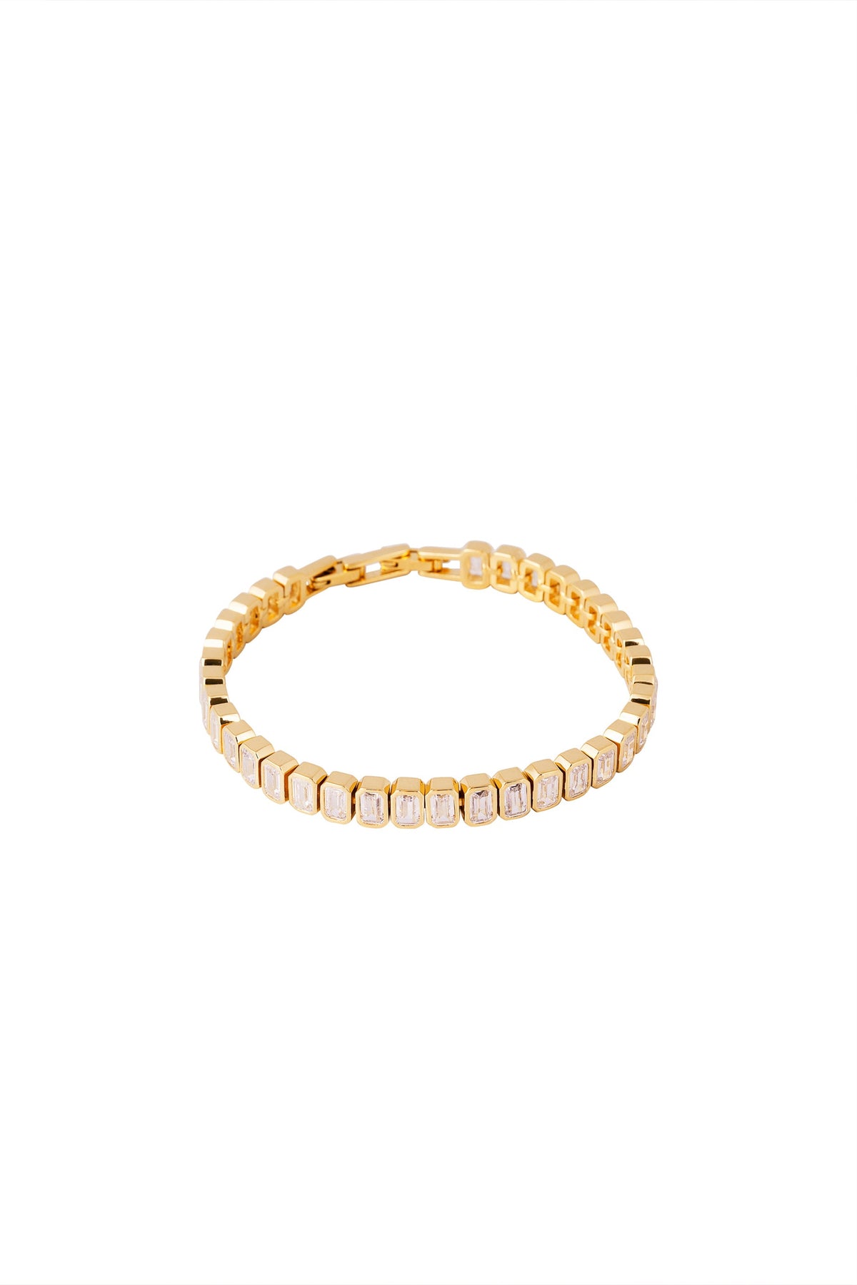 The Blanc Tennis Bracelet is a timeless piece that combines elegance and sophistication with everyday wearability. Crafted with meticulously set sparkling crystals, this bracelet offers a seamless line of brilliance that catches the light from every angle.