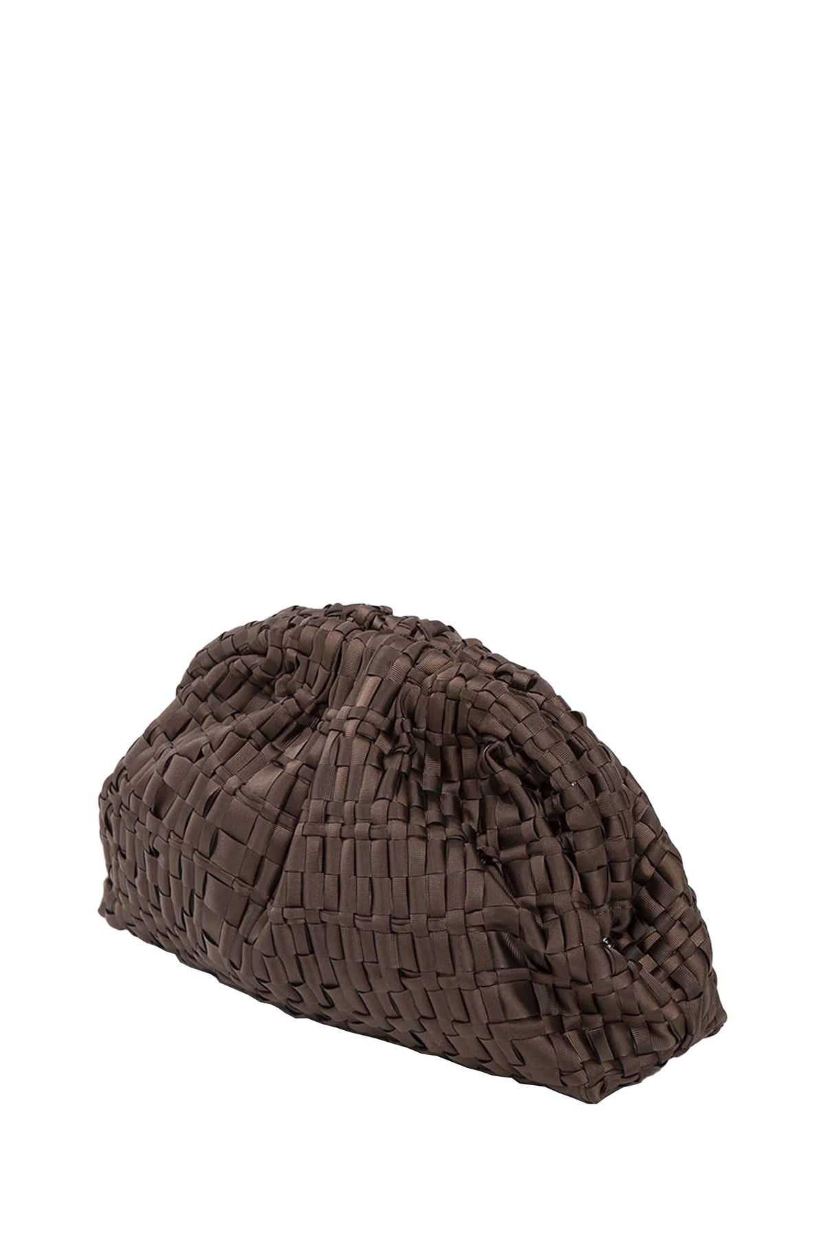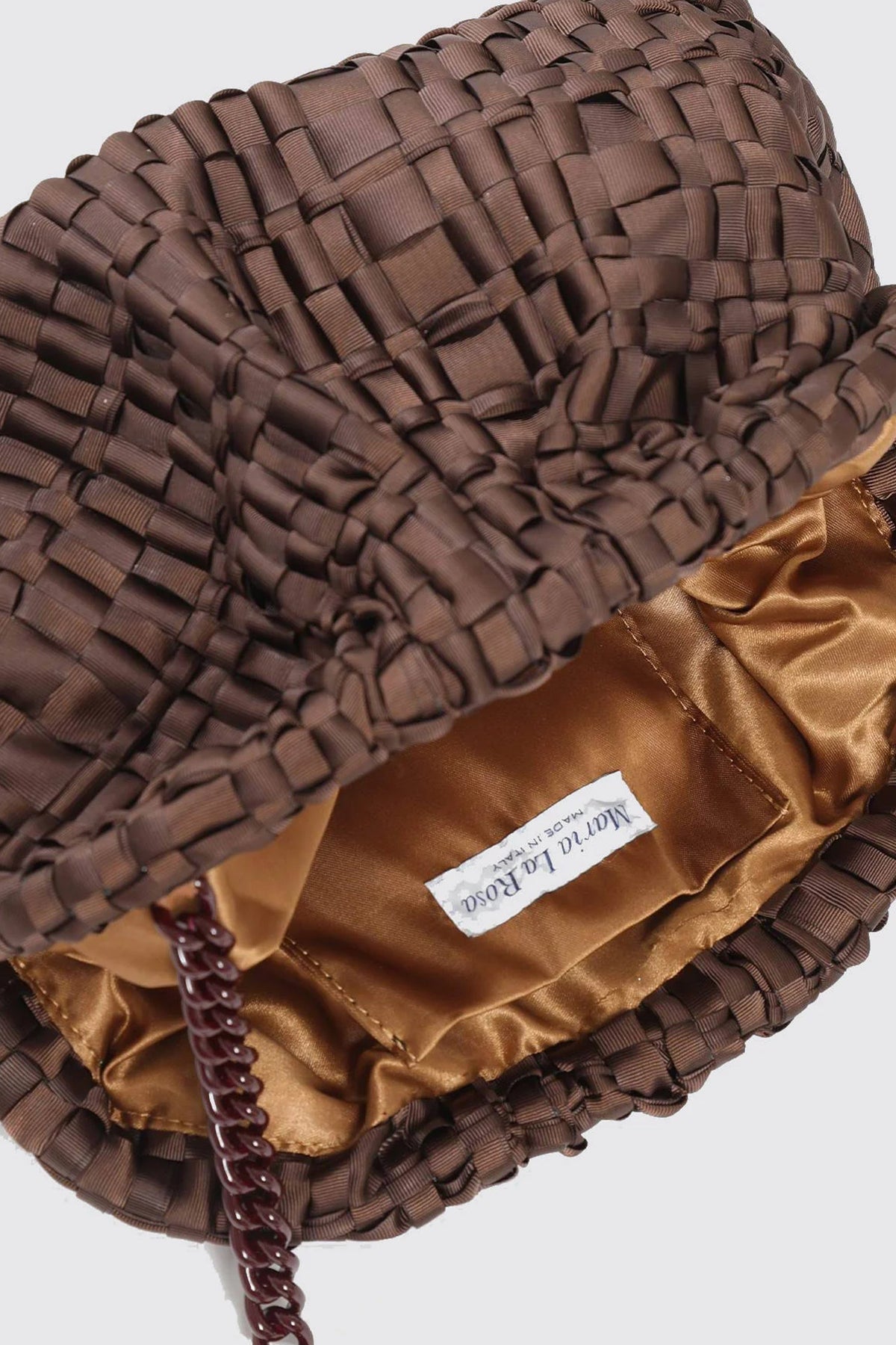 The Game Bag is a mini clutch in woven satin fabric, handmade on ancient looms. It is equipped with a crossbody chain and inner pocket.