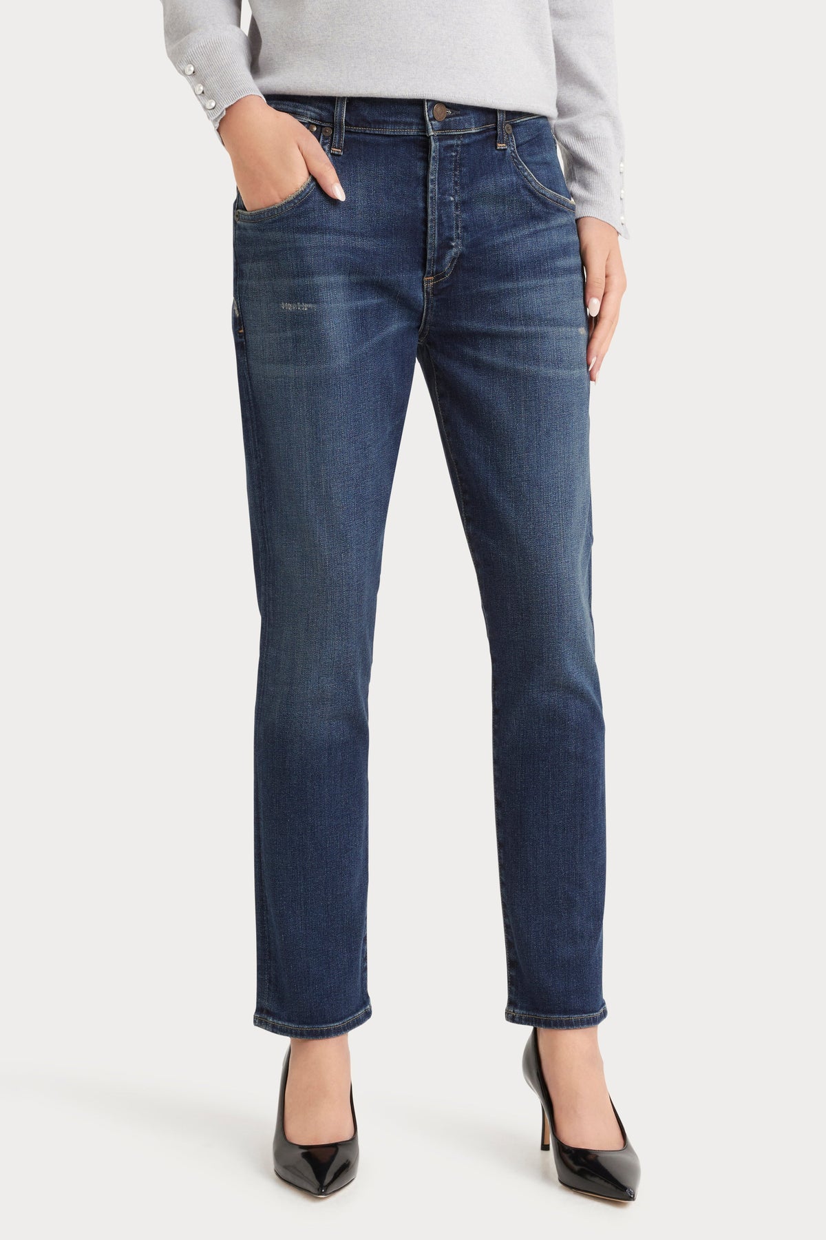 The Emerson Jean is a signature boyfriend jean, tailored with precision. The slimmest of the Citizen's fits, the Emerson features a low-rise and flattering ankle-length inseam. The style features comfort stretch denim with a super soft hand for all day wearability. Easily dressed up or down, these look great with a feminine heel or causal sneaker.