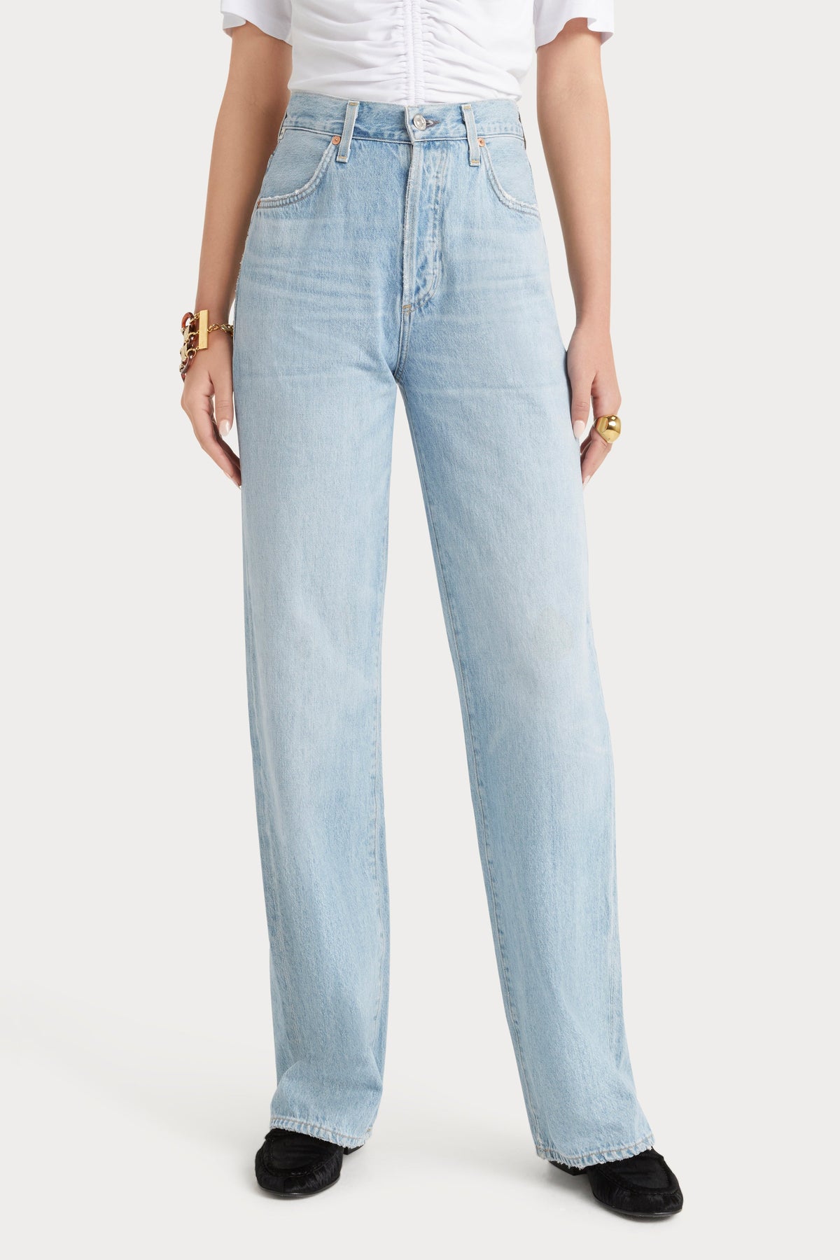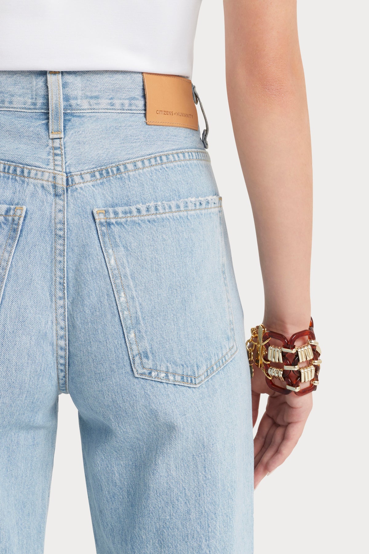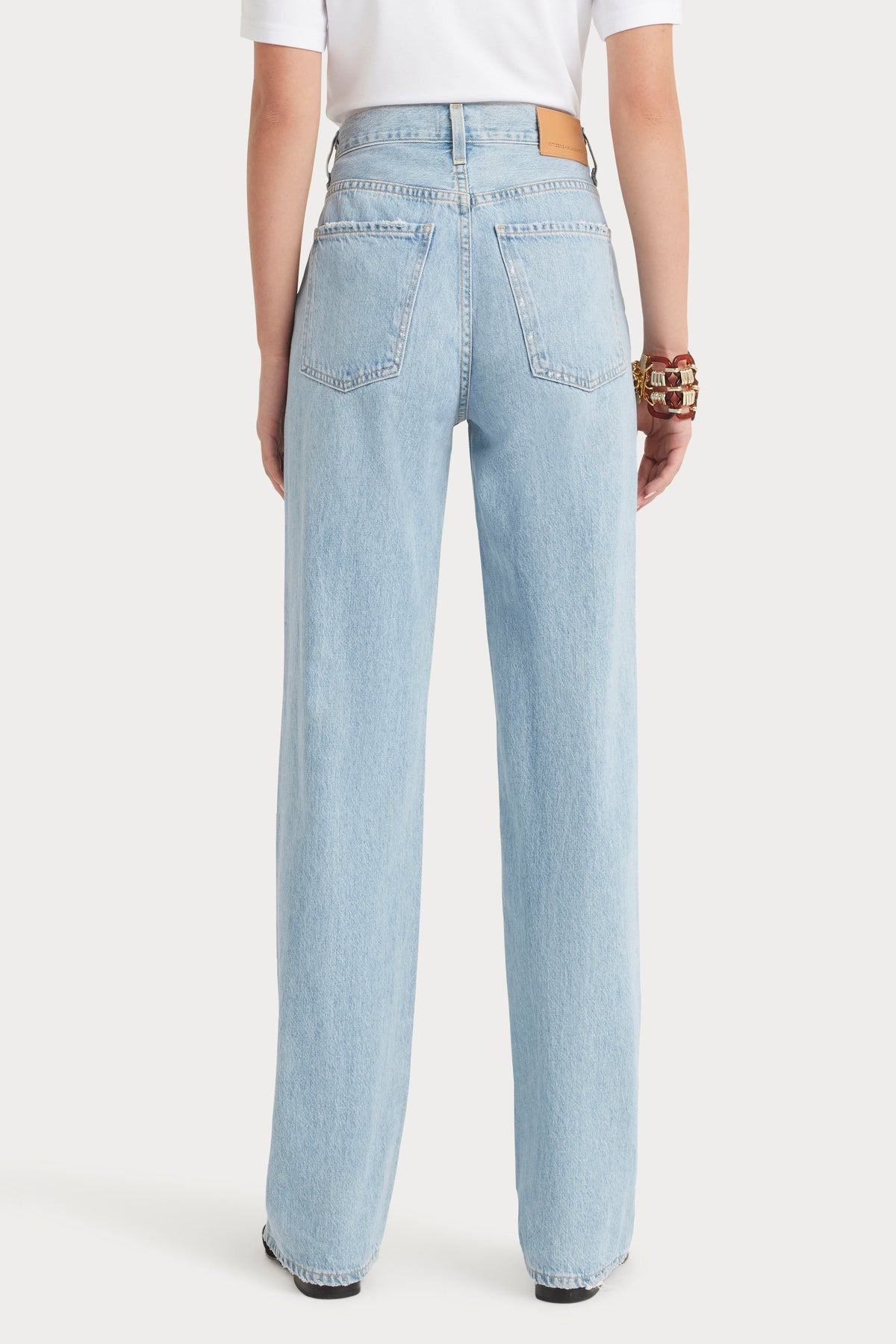 The Annina Jean is a trouser inspired silhouette designed to sit high on the waist with a flattering, ultra-relaxed wide-leg. The style features a traditional denim wash, radiating a vintage character with a super soft hand and lightweight feel.