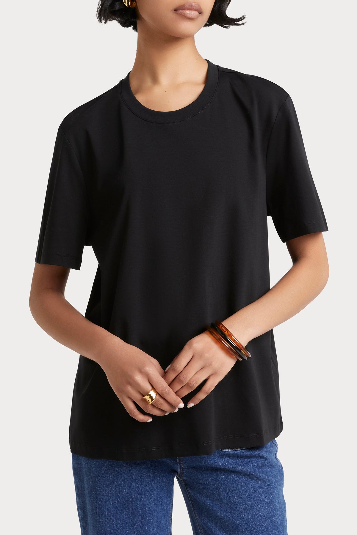 - Cotton rib crew neck - Relaxed fit on the body - Wide shoulders - Boxy sleeves - Hip length