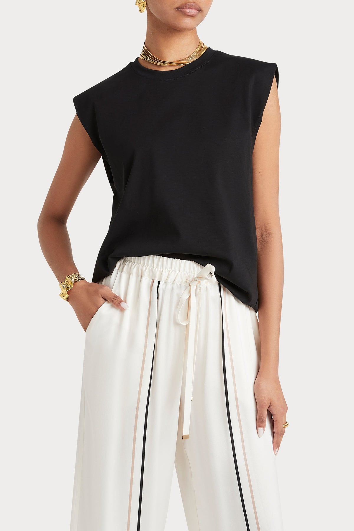 - Mercerised cotton crew neck t-shirt - Wide shoulders - Relaxed fit on the body - Hip length