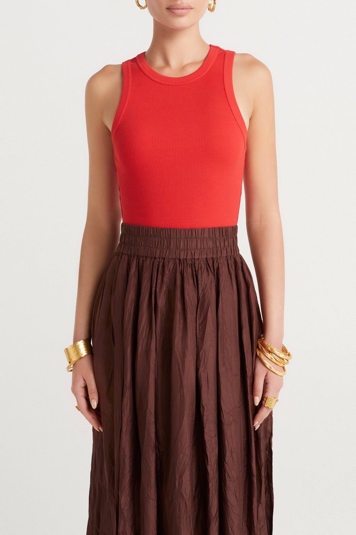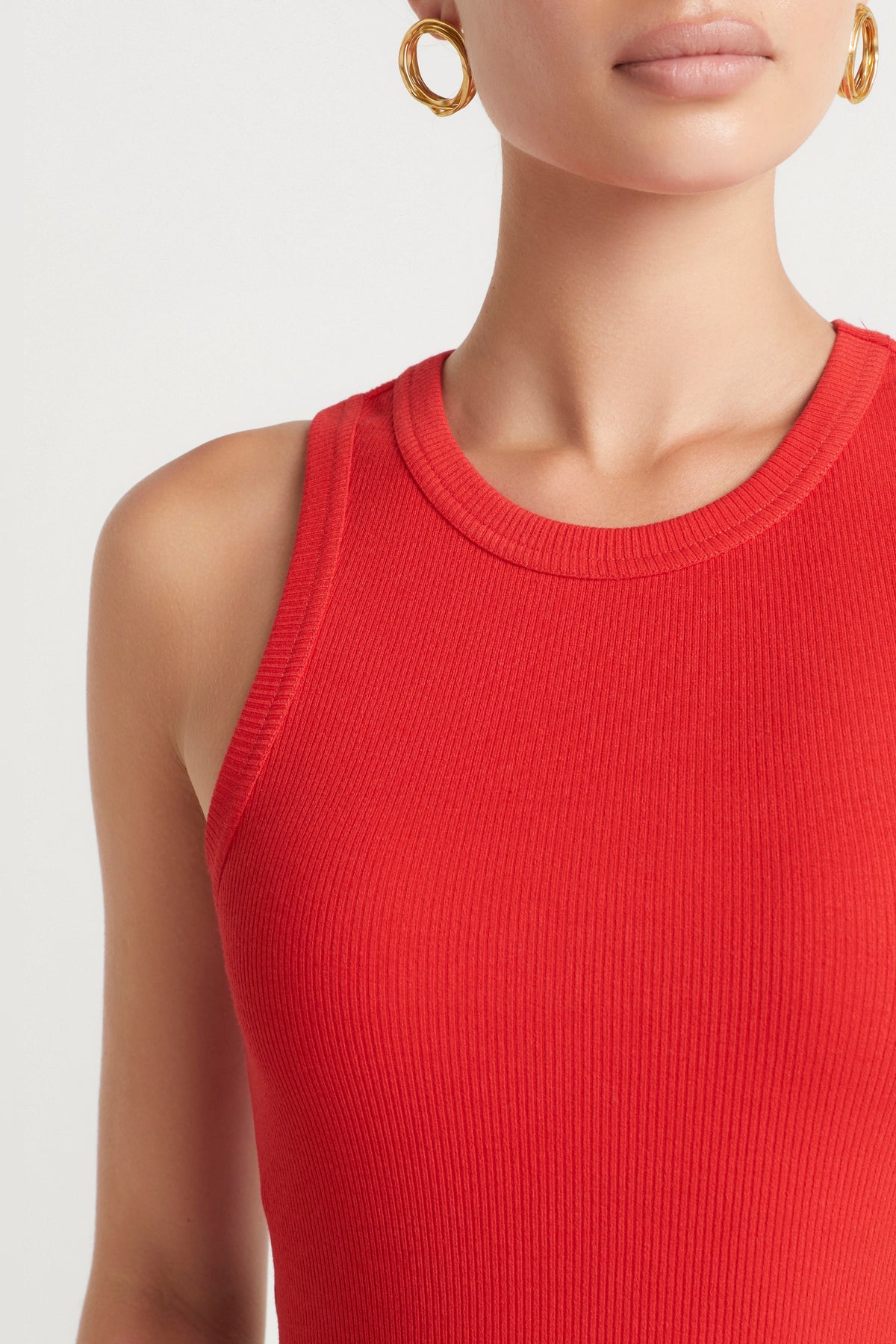 - Tank shape - Rib fabrication - Crew Neck