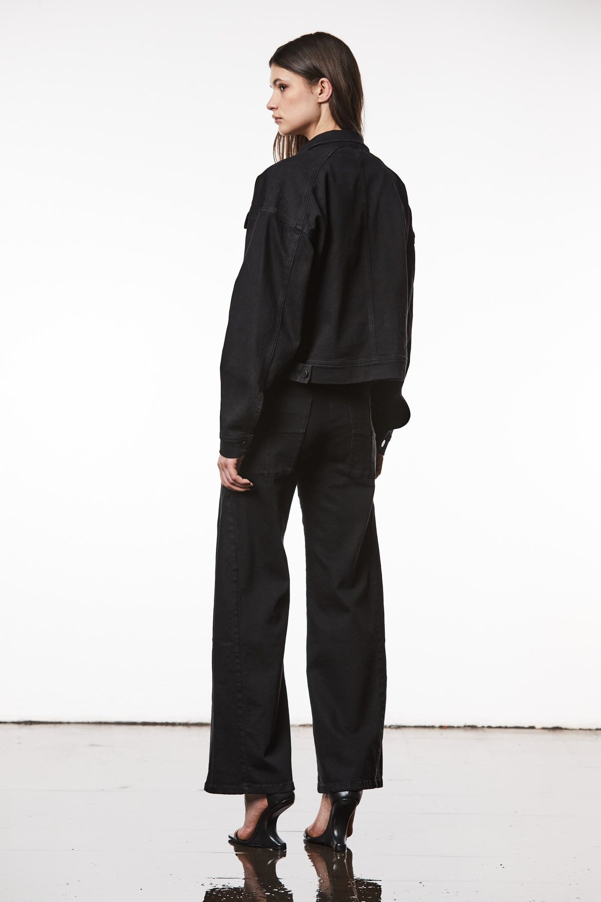 Introducing the Thom Krom Denim Jacket, a statement piece for your wardrobe. This oversized jacket boasts a cropped fit, flattering for all body types. Crafted from elastic denim fabric, it provides comfort and style all in one.