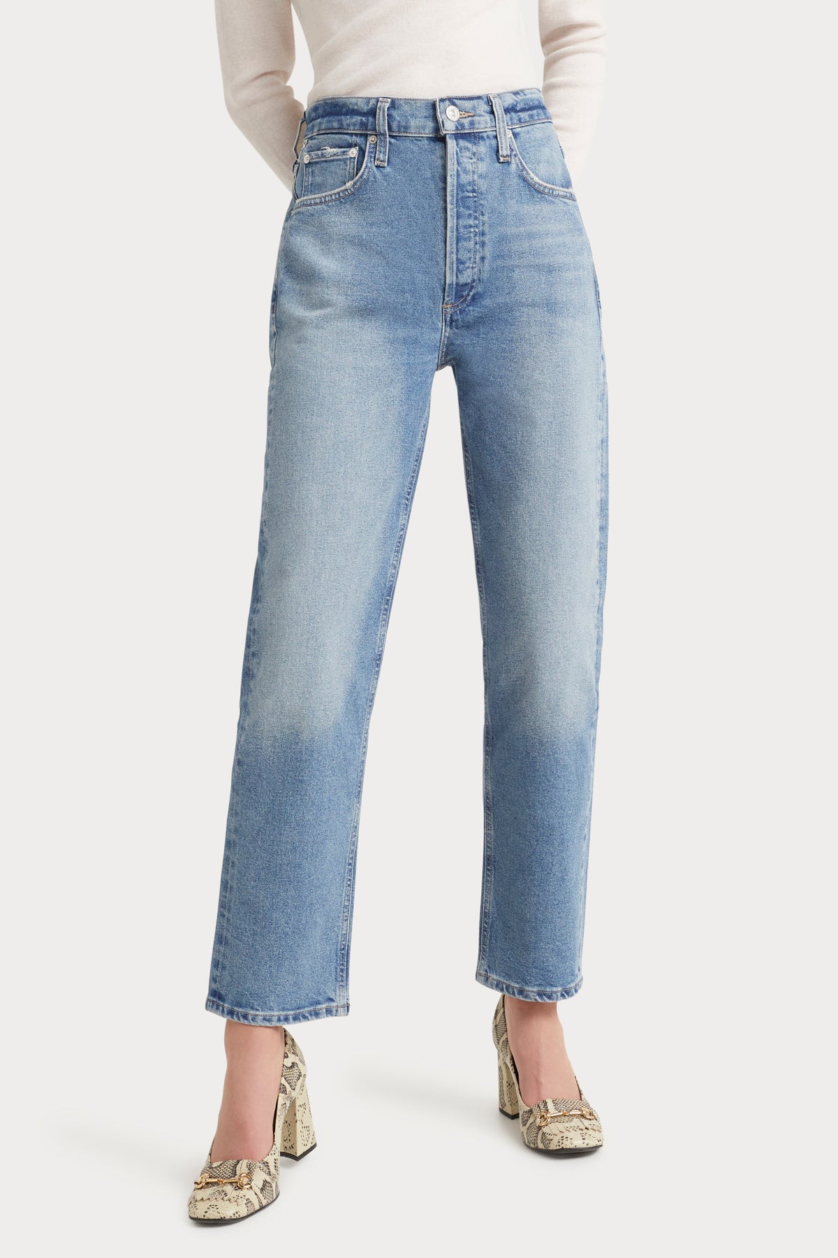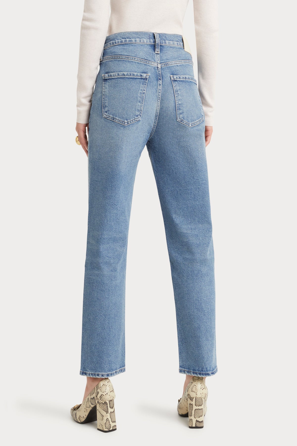 A stretch essential. The Delfina jean features a high-rise and straight fit, designed to be ultra-flattering.This fit is true to size.