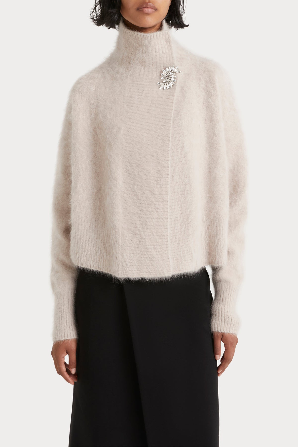 - Wide rib shawl collar and opening
