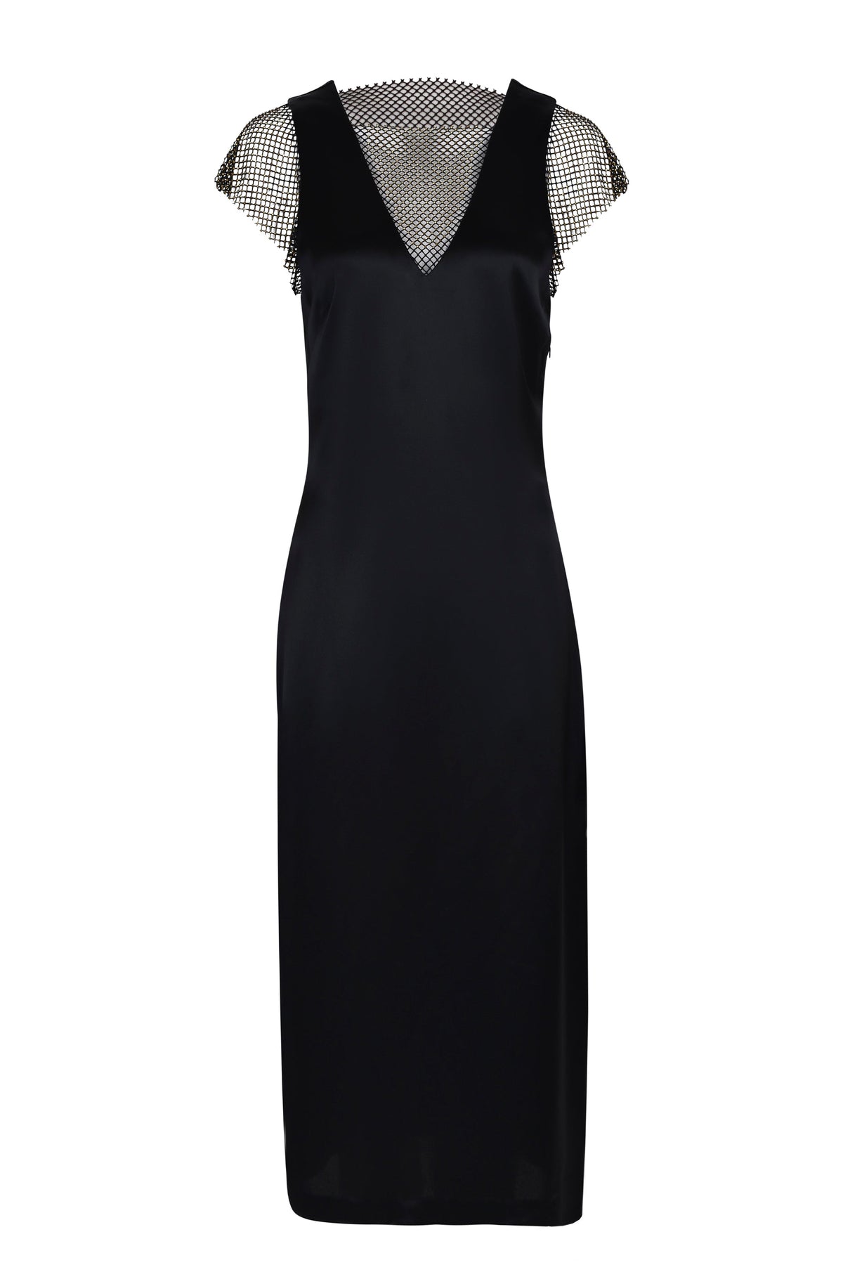 - Grown on cap sleeve in chainmail - Slim fit with centre back split