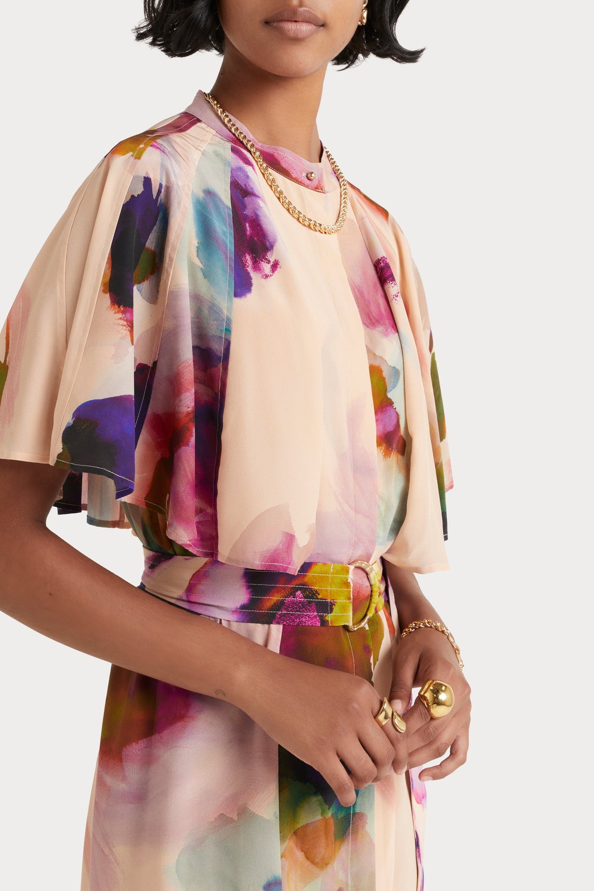 - Cropped cape inserted into the princess seams - Princess seams with symmetrical split