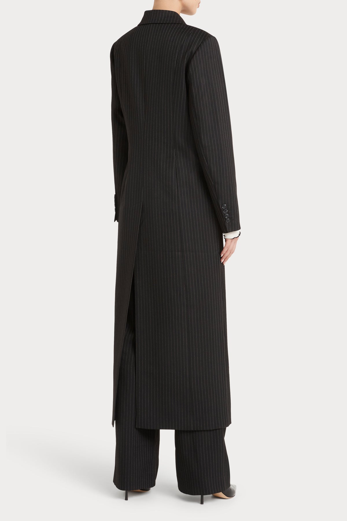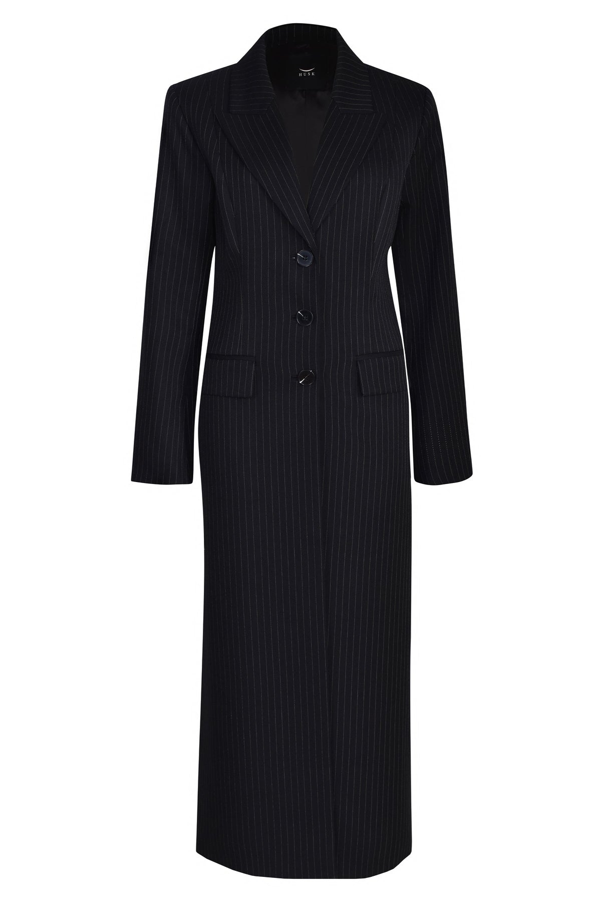 - Slim fit, tailored coat- Peak lapel collar shape- Three centre front buttons- Functional front pockets with pocket flaps- Longline length