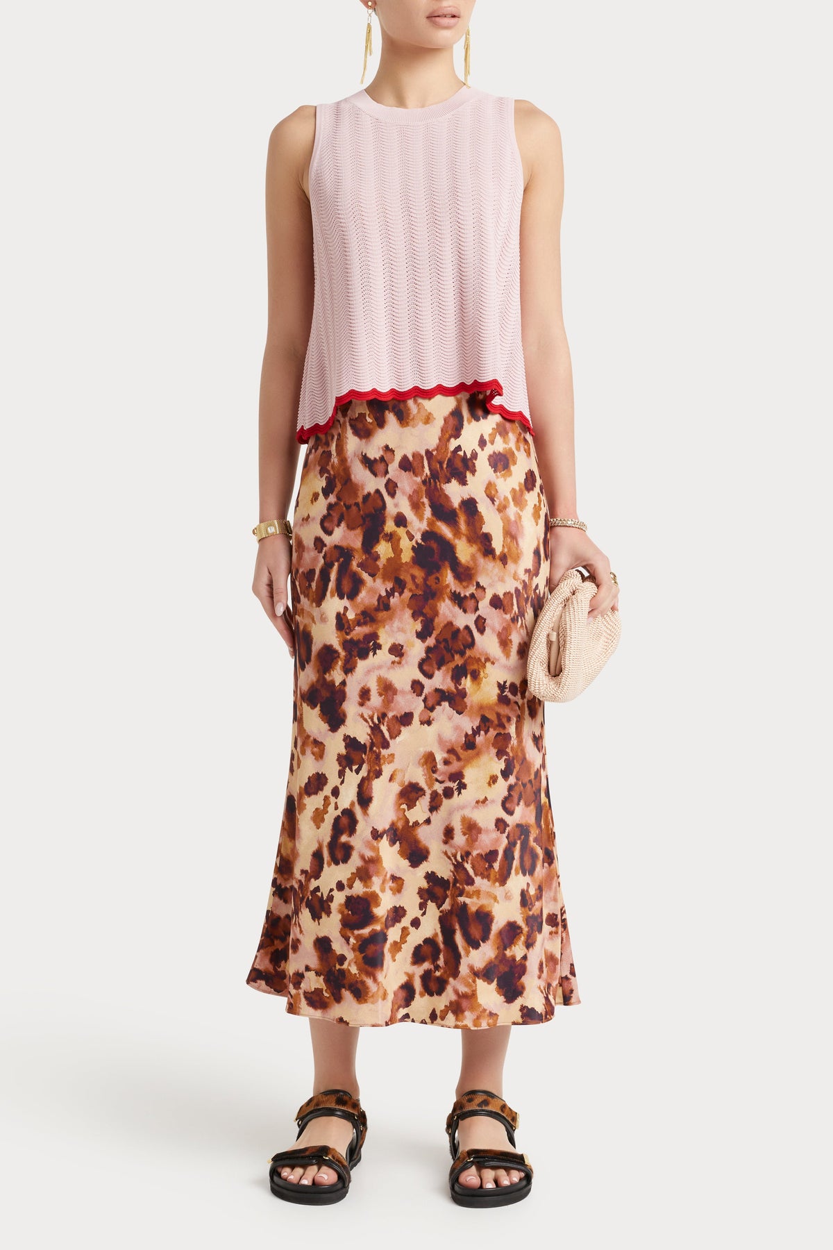 - Printed Viscose Satin- High waisted bias cut skirt- Elastic waist- Midi length