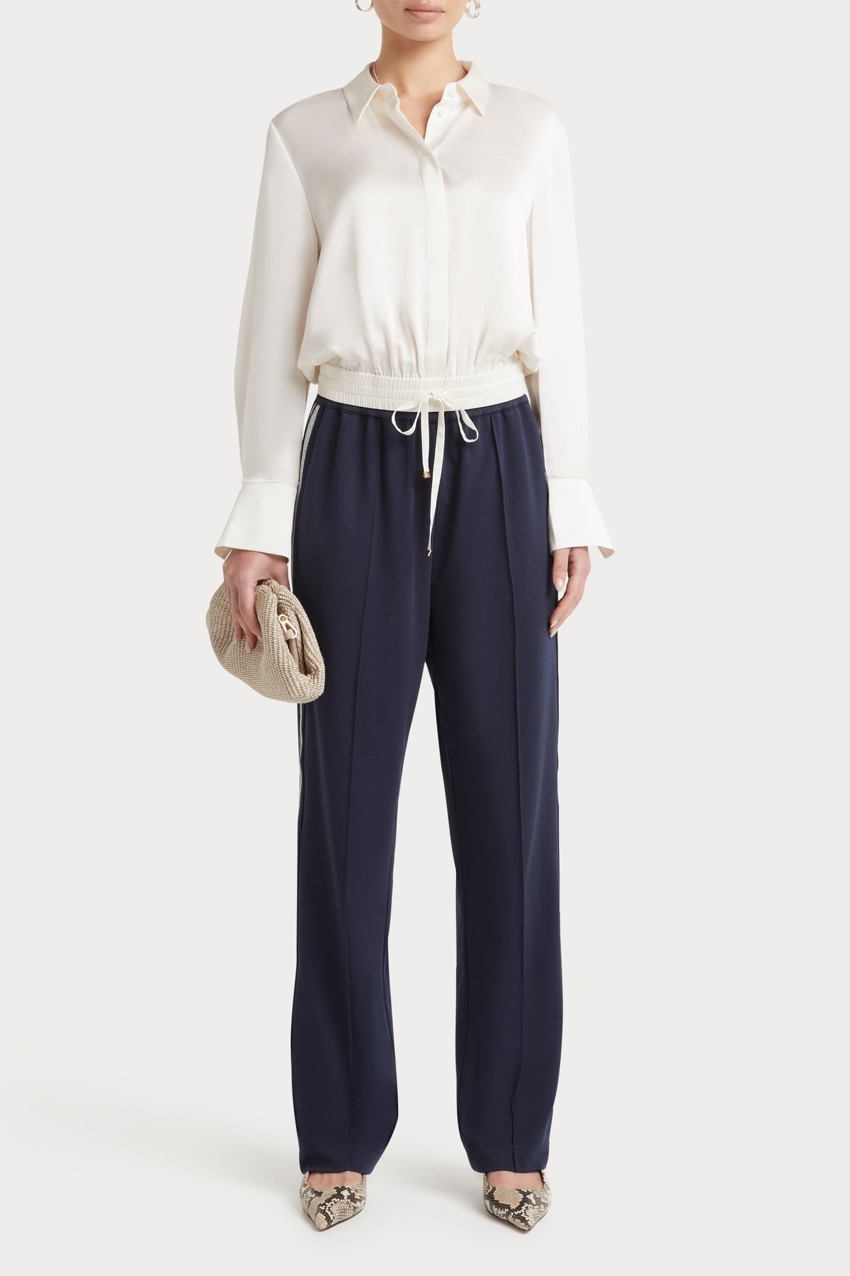 The Azalea Top introduces a feminine silhouette in silk, designed with romantic detailing and a fluid drape that flatters the form.