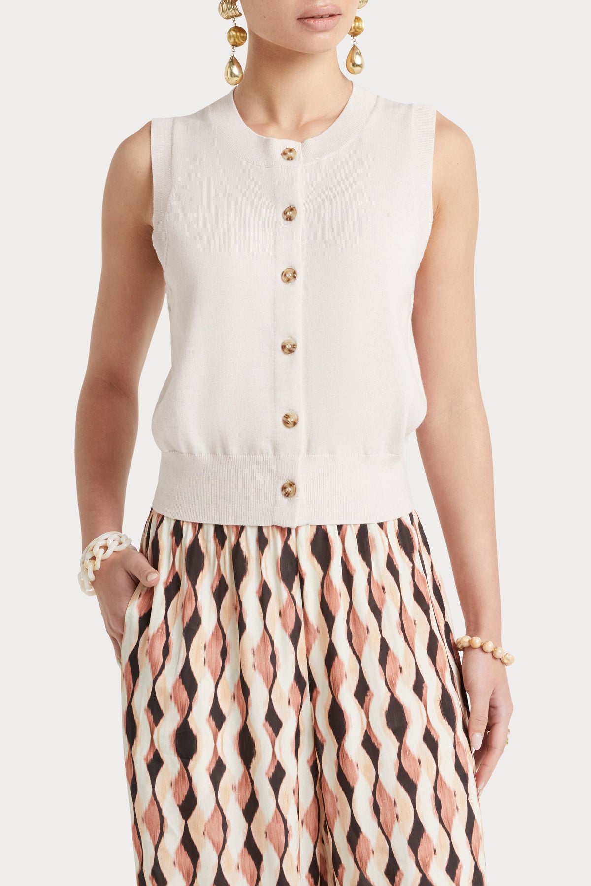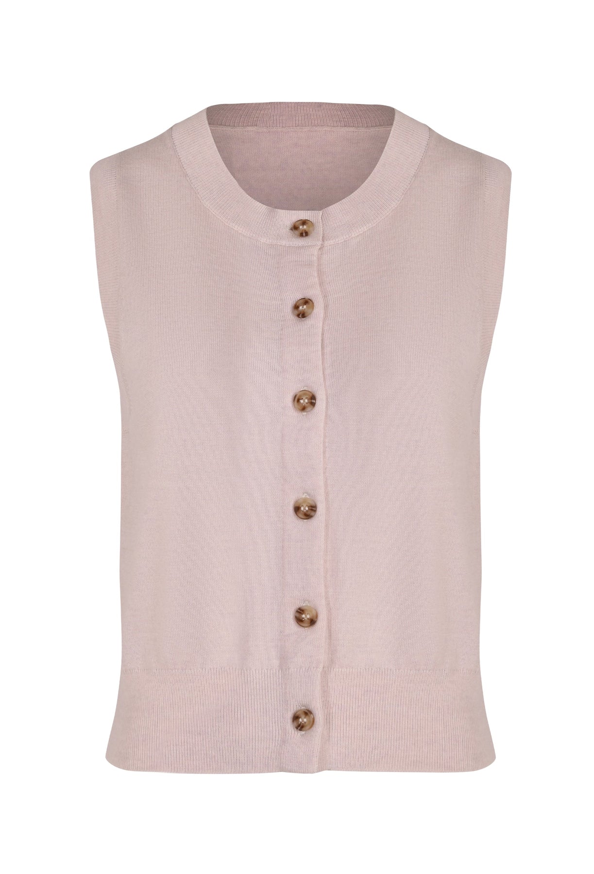 - 100% Merino Wool knit vest- Regular fit- Crew neckline with button through placket- Rib bands at neck, sleeve and hem