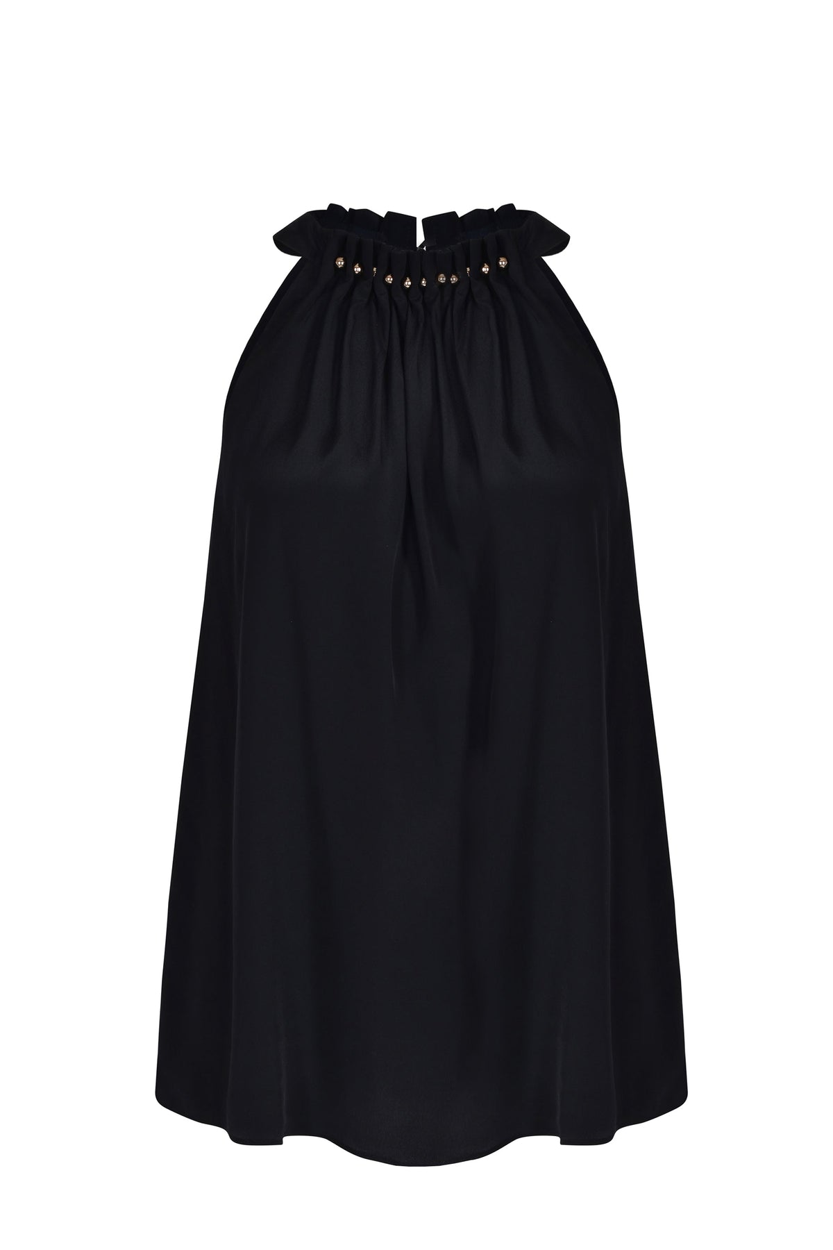 A refined top in a viscose–silk blend that drapes softly for polished day-to-night ease.