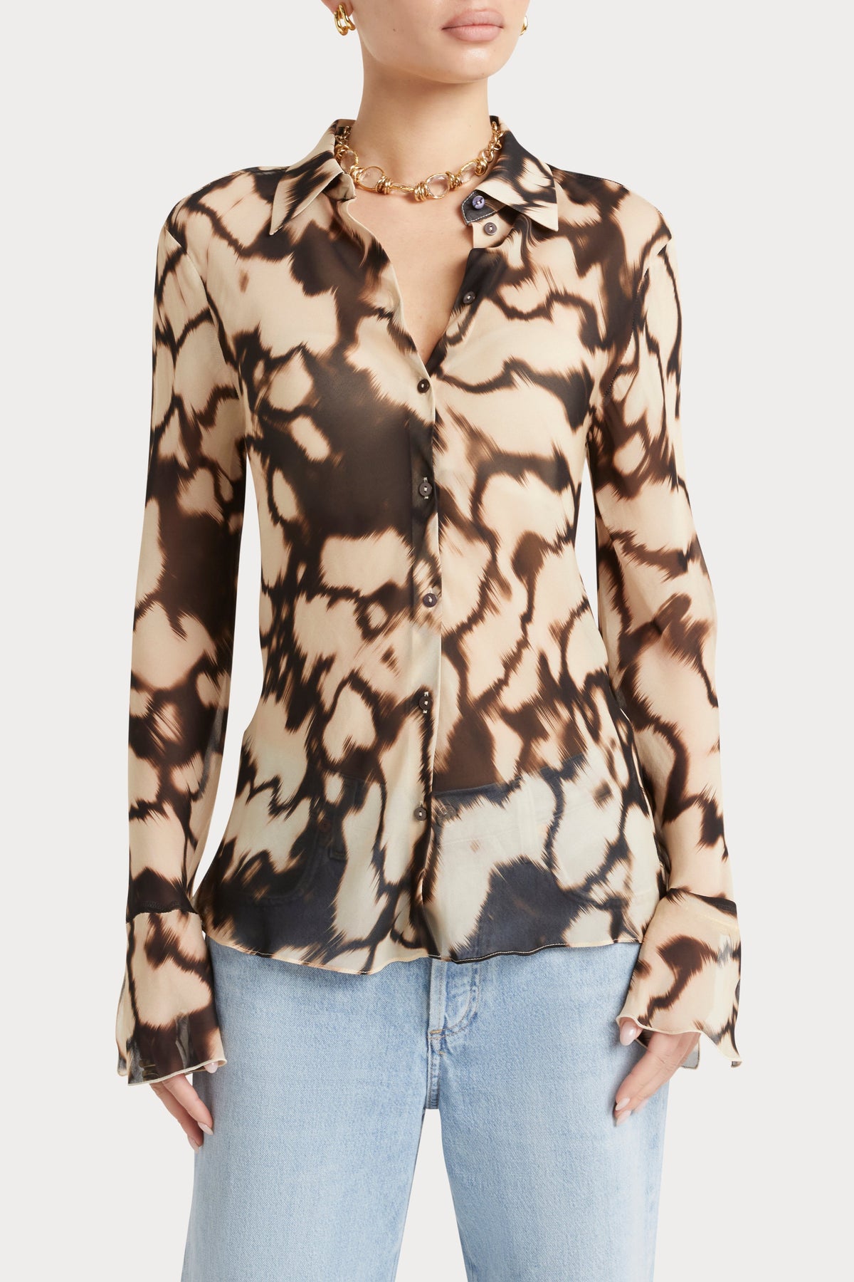 - Printed georgette shirt- Bias cut for a slim fit- Collar with front button through opening- Long sleeve with slight flared cuff