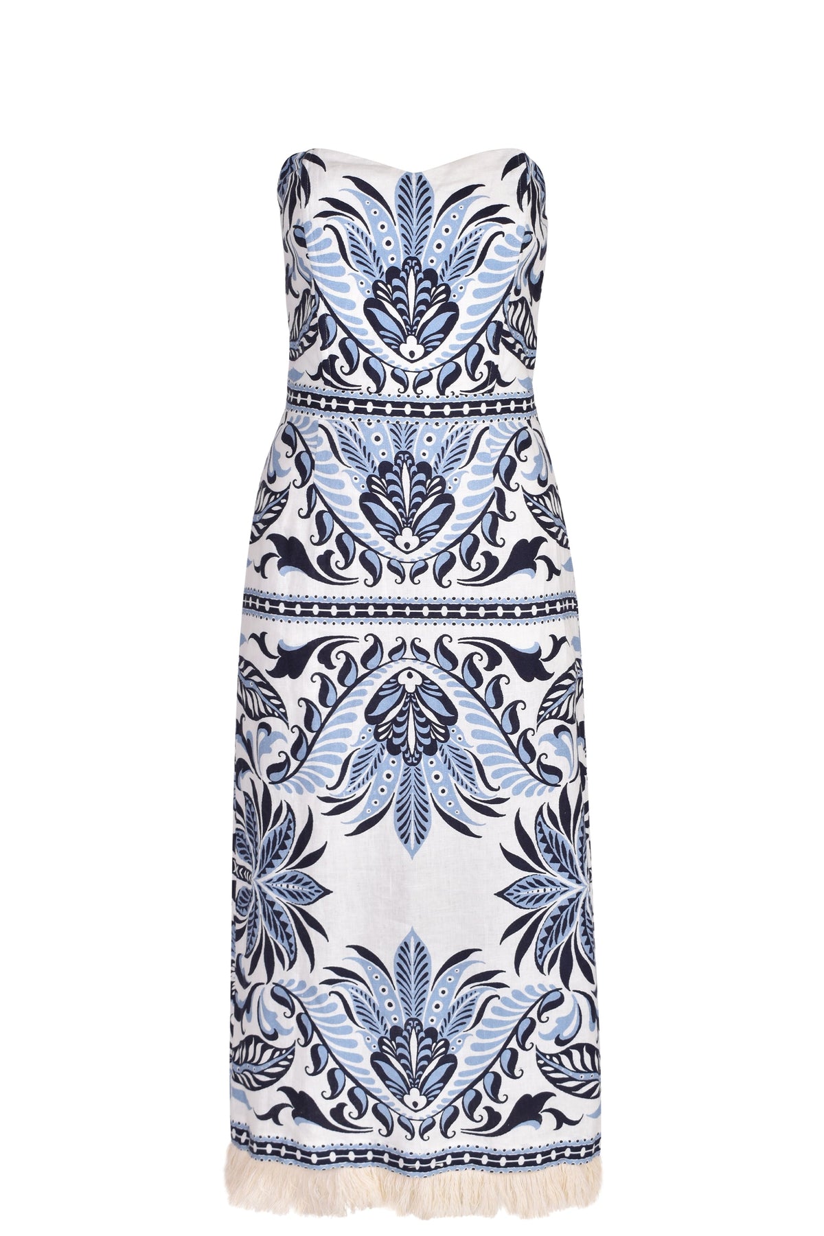 The Thalassa Dress embraces bold print and effortless femininity, cut in premium tailored linen for elevated warm-weather style.