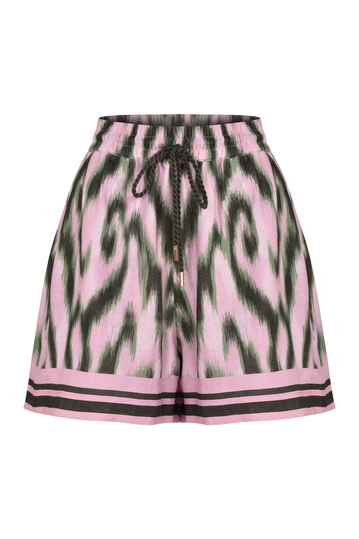 A statement short with bold print and effortless tailoring, balancing ease with elevated design.