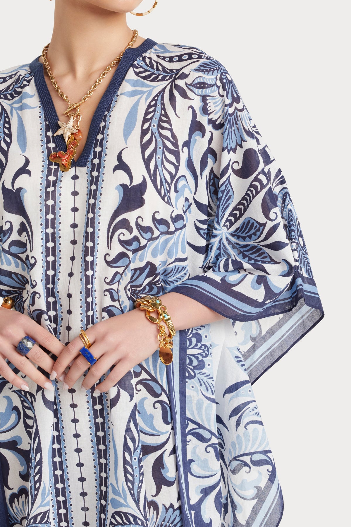 Thalassa Kaftan is crafted in cotton voile for an easy beach throw over resort look.
