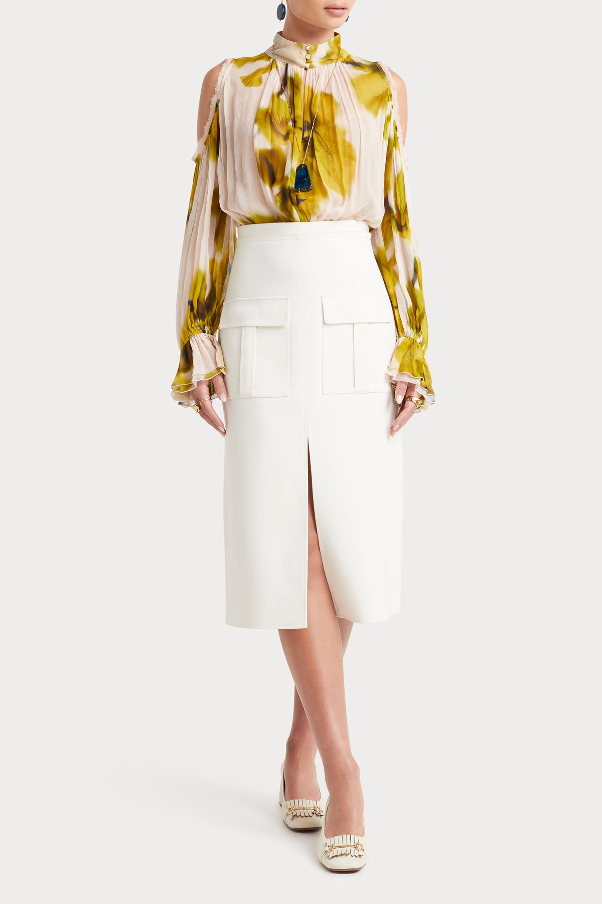 - Long blouson sleeve