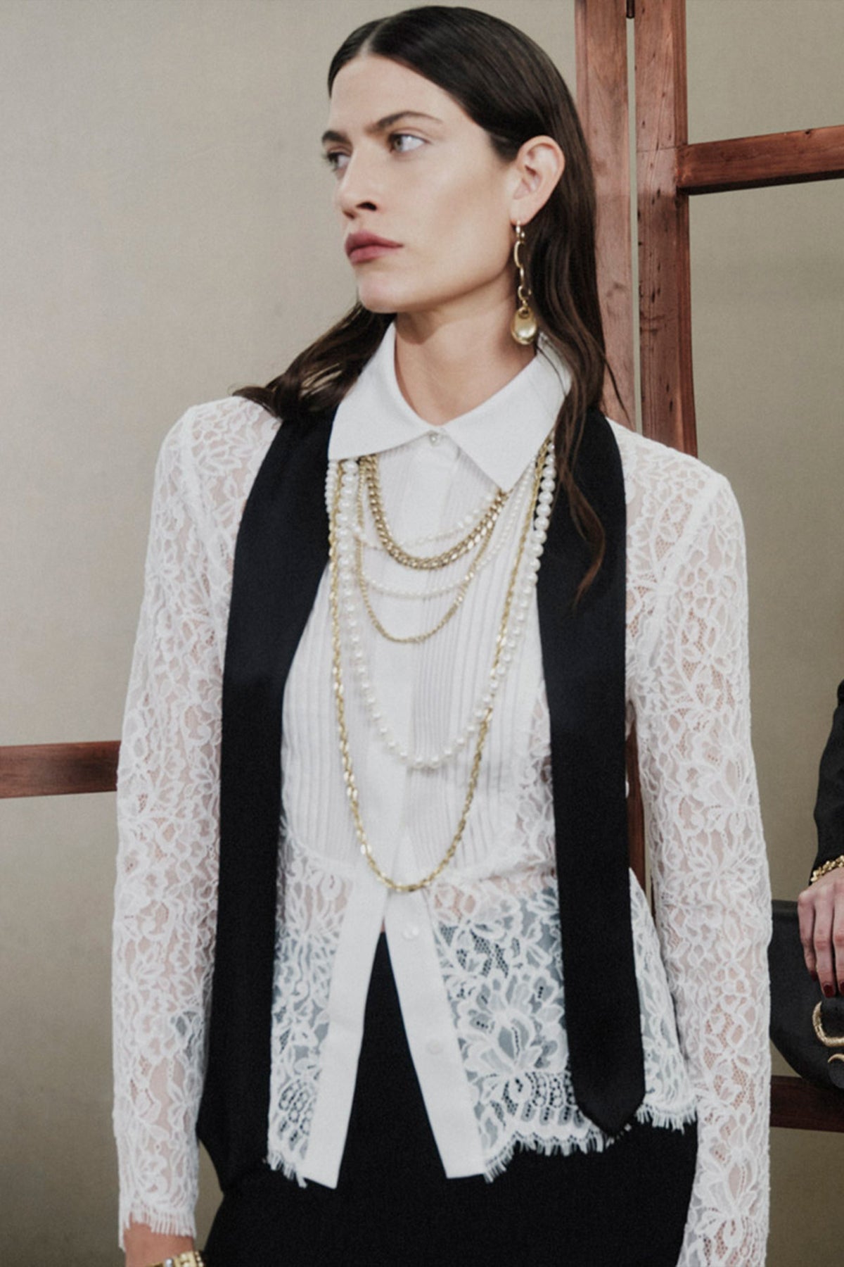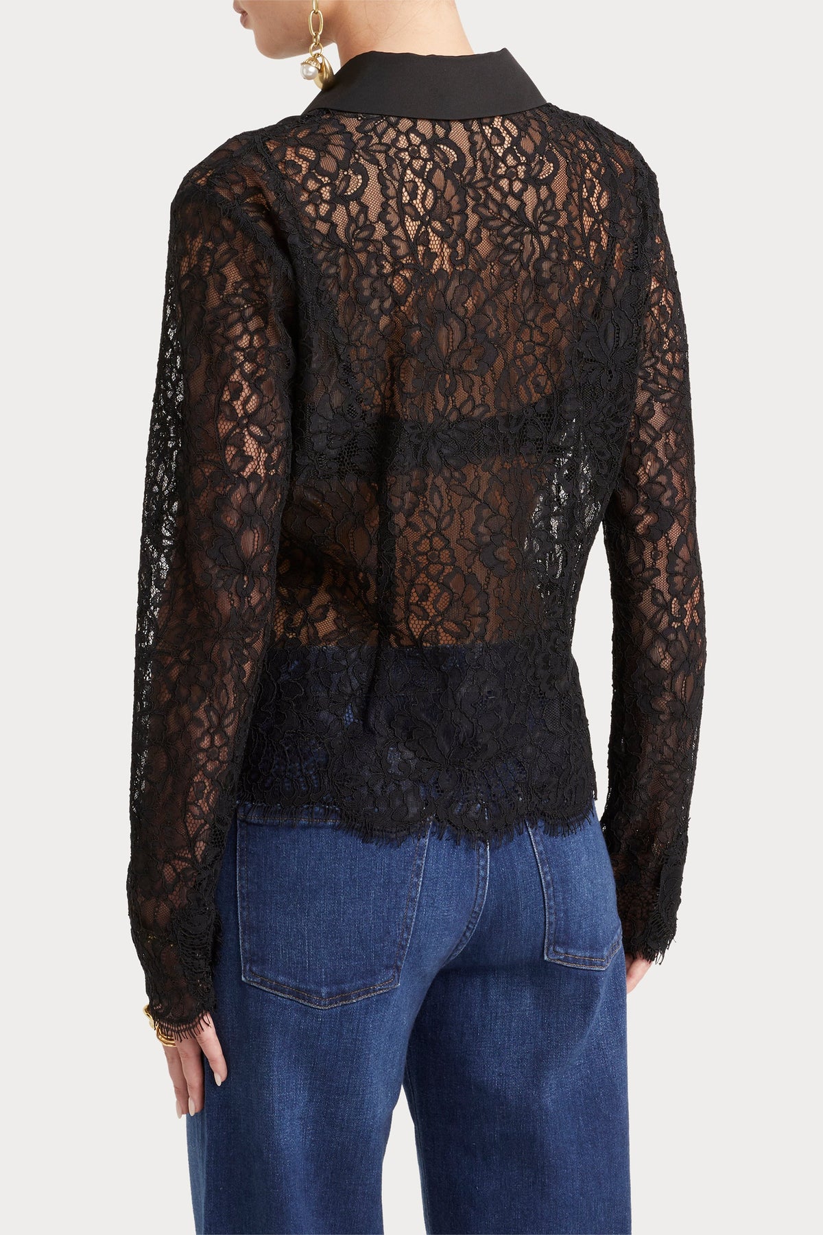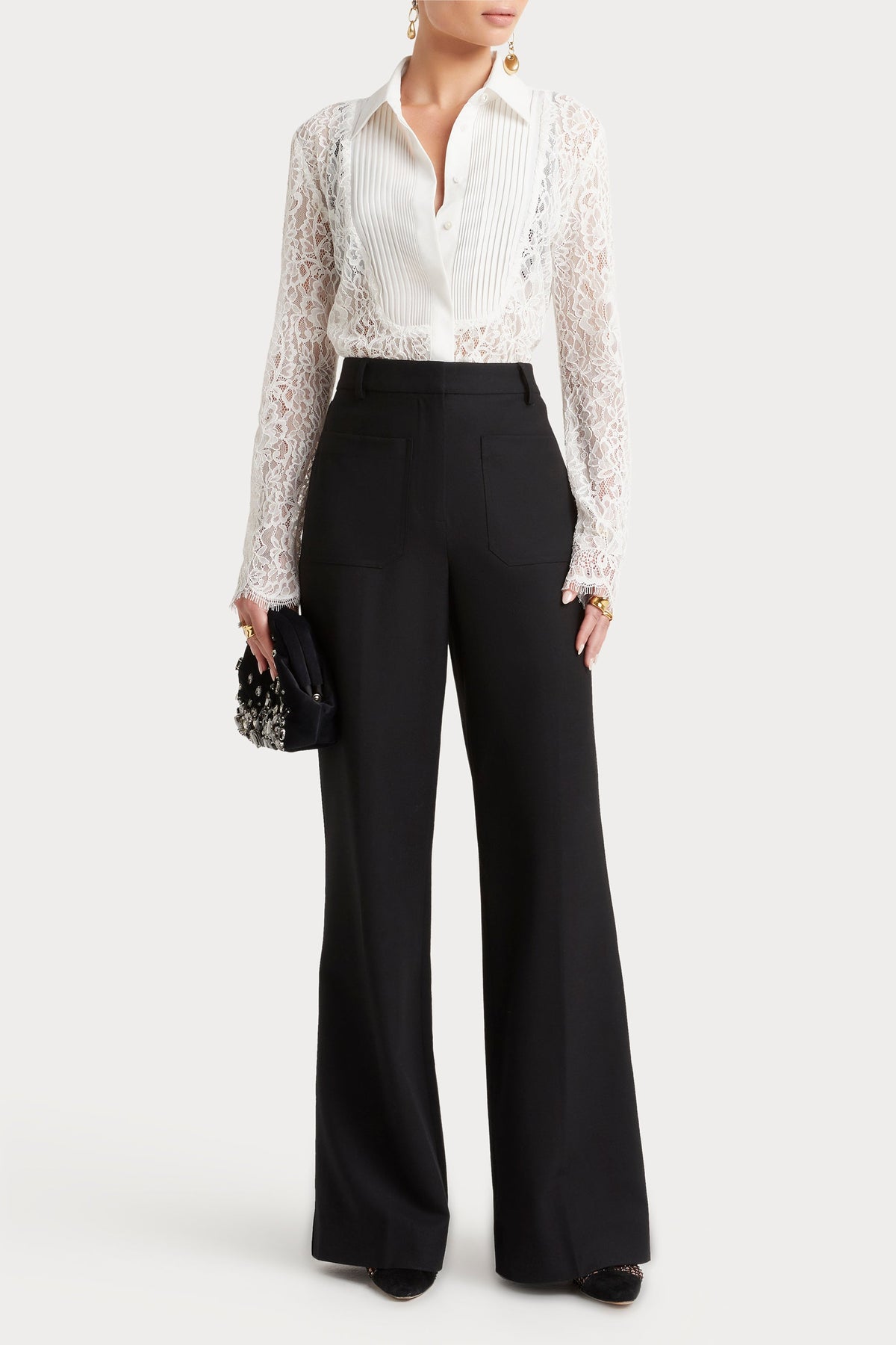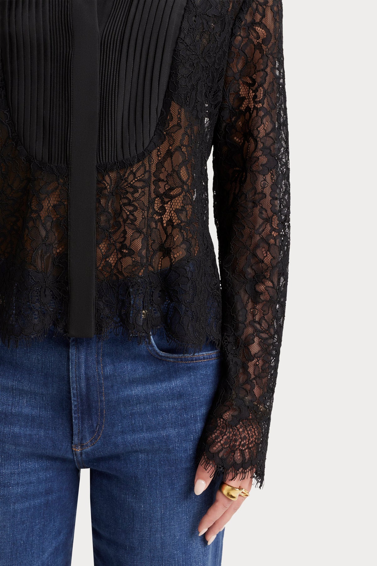 A feminine lace top designed for refined, polished occasions.