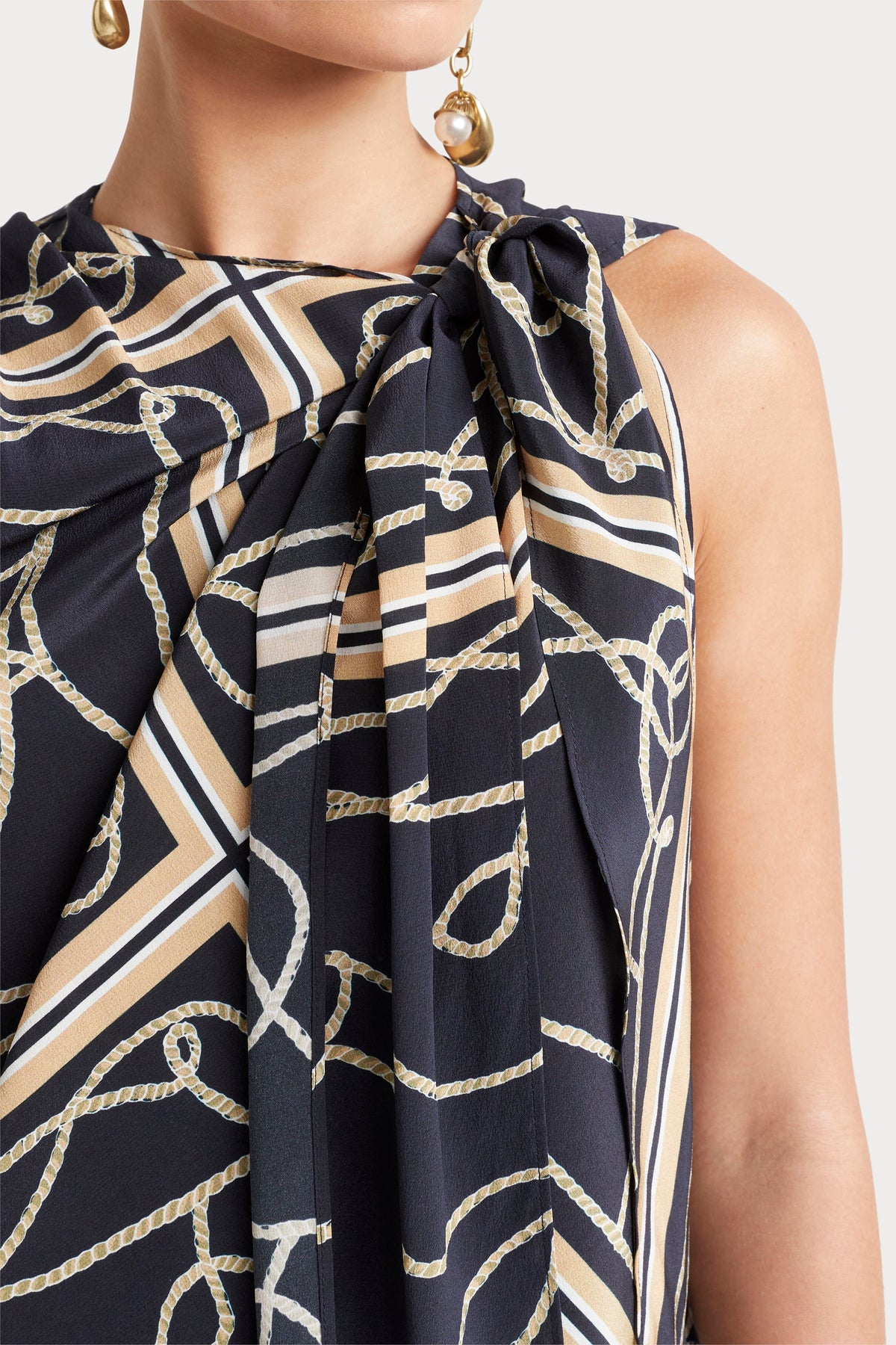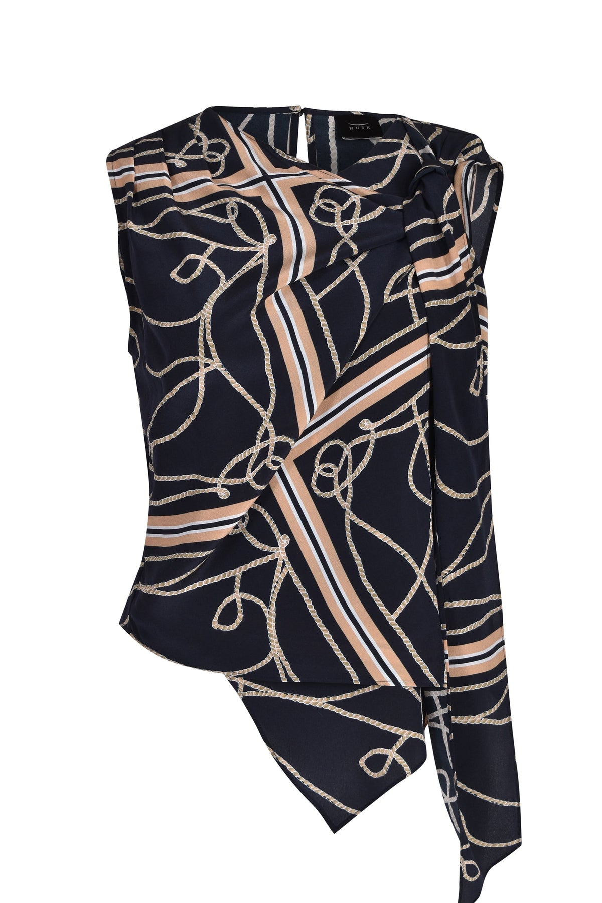 A feminine silk CDC top featuring fluid movement and elevated print placement.